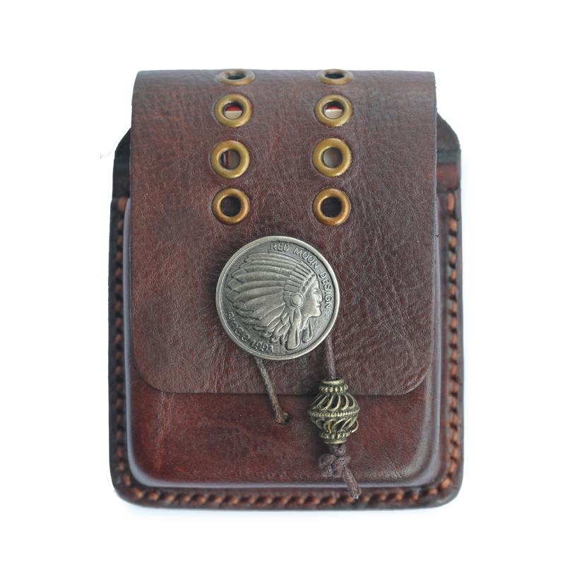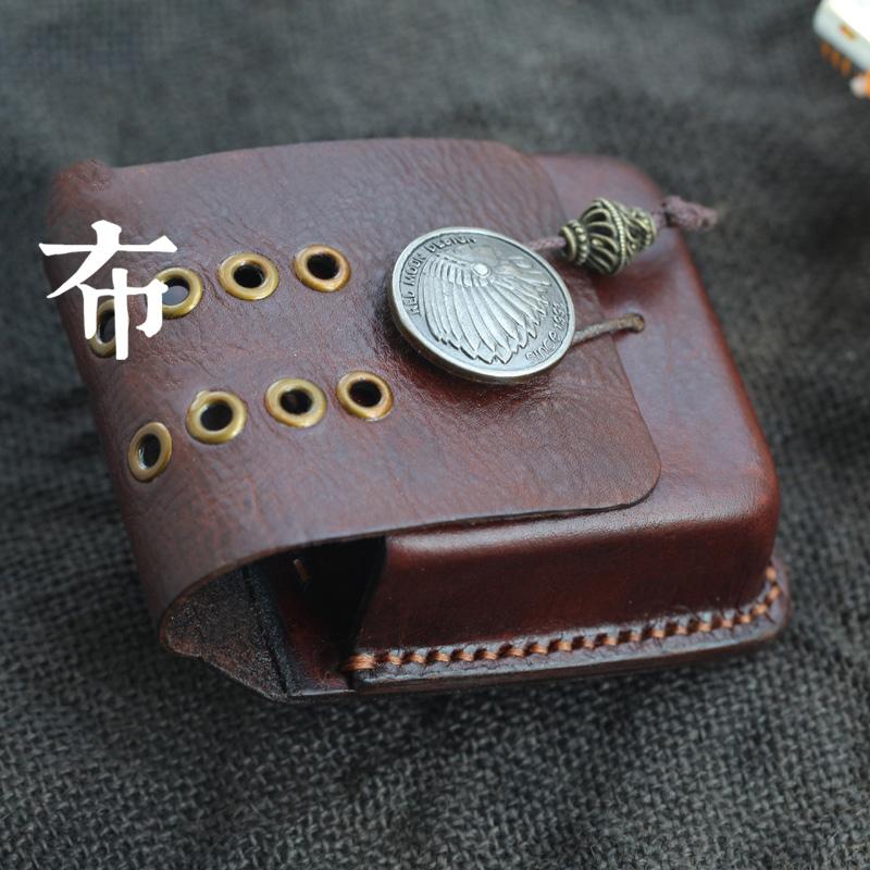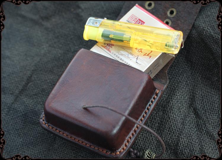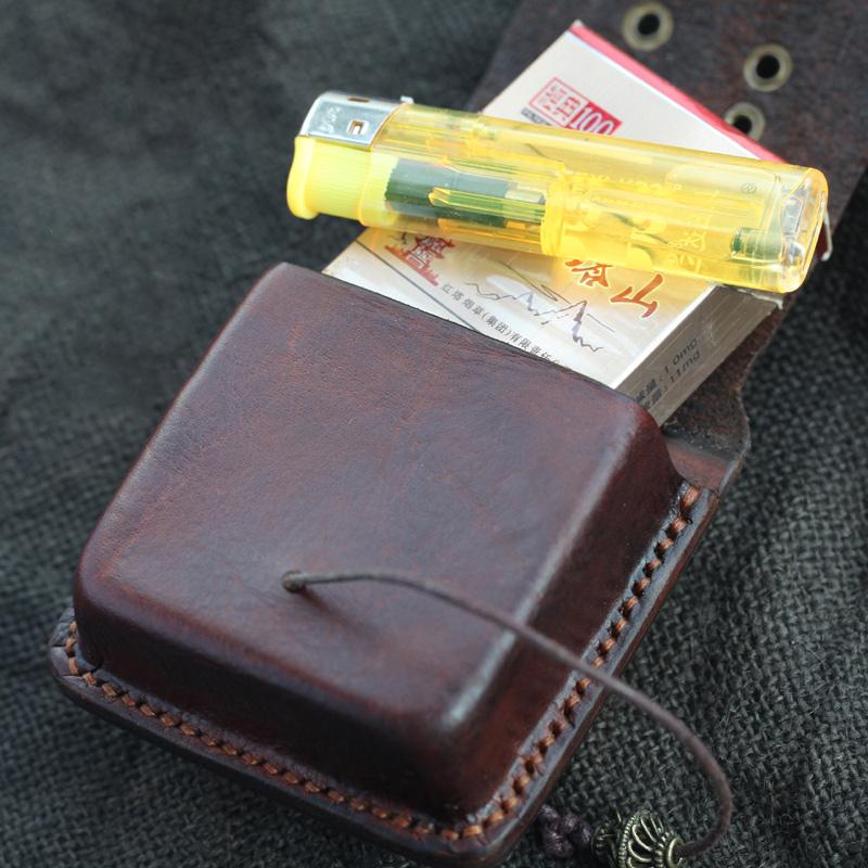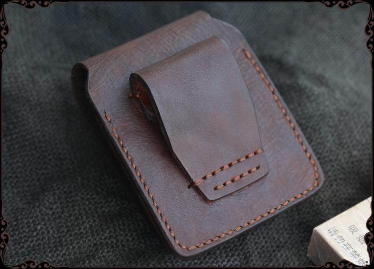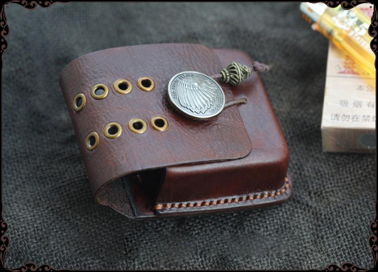 Style: Cool Handmade Dark Brown Leather Mens Zippo Cigarette Case with Lighter Holder for Men