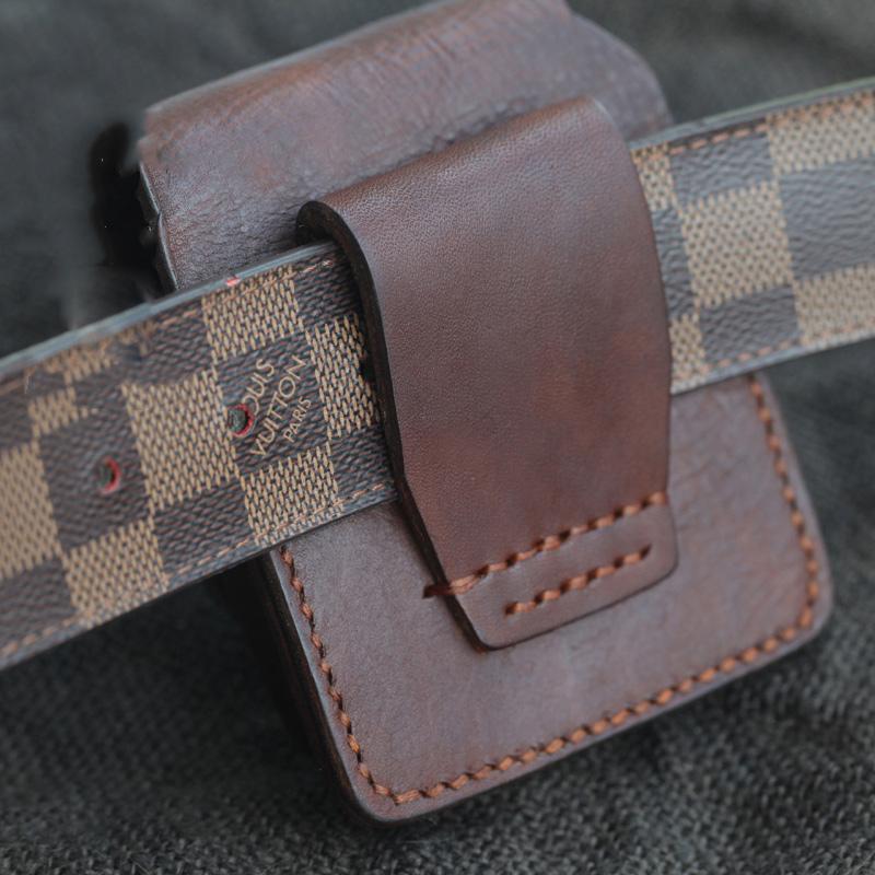 Design: Cool Handmade Dark Brown Leather Mens Zippo Cigarette Case with Lighter Holder for Men