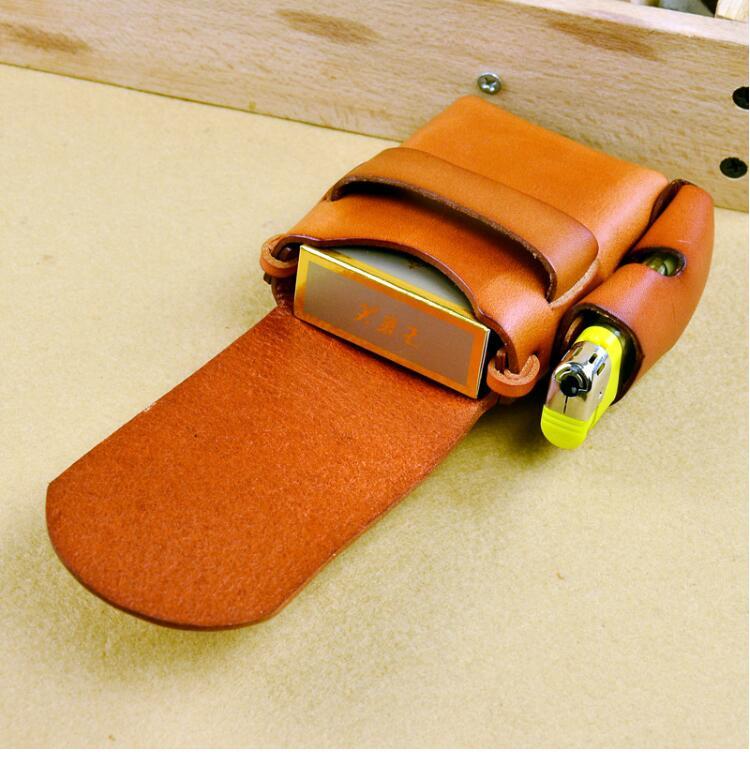 Cool Handmade Leather Mens Cigarette Case with Belt Loop Lighter Holder for Men