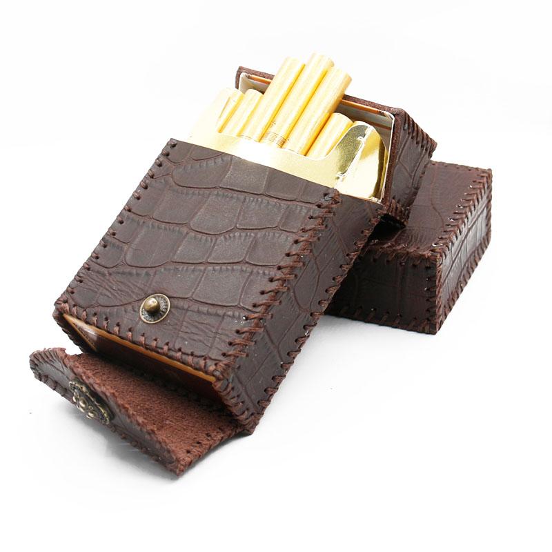 Style: Cool Handmade Leather Mens Engraved Floral Cigarette Holder Case for Men