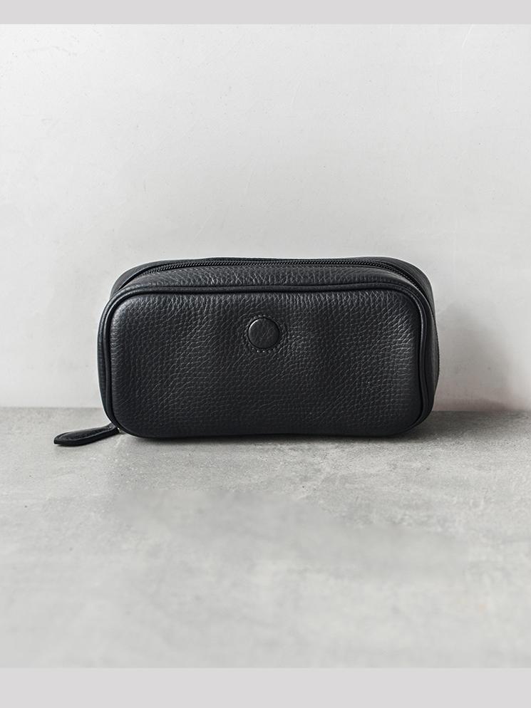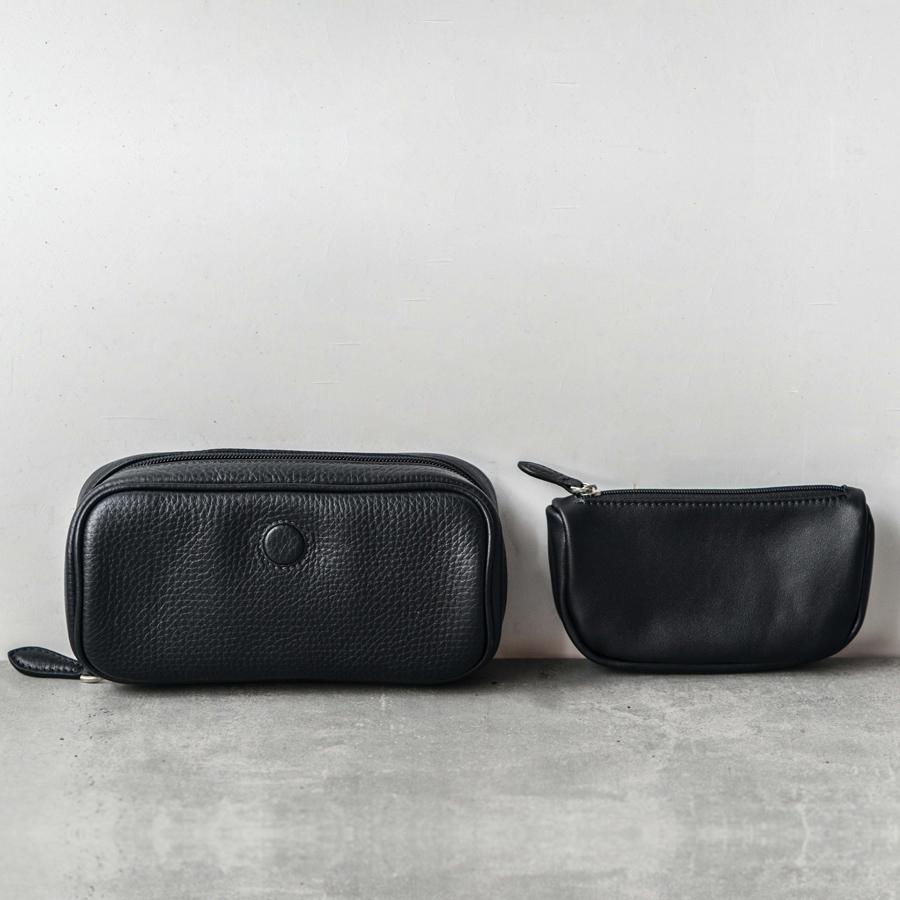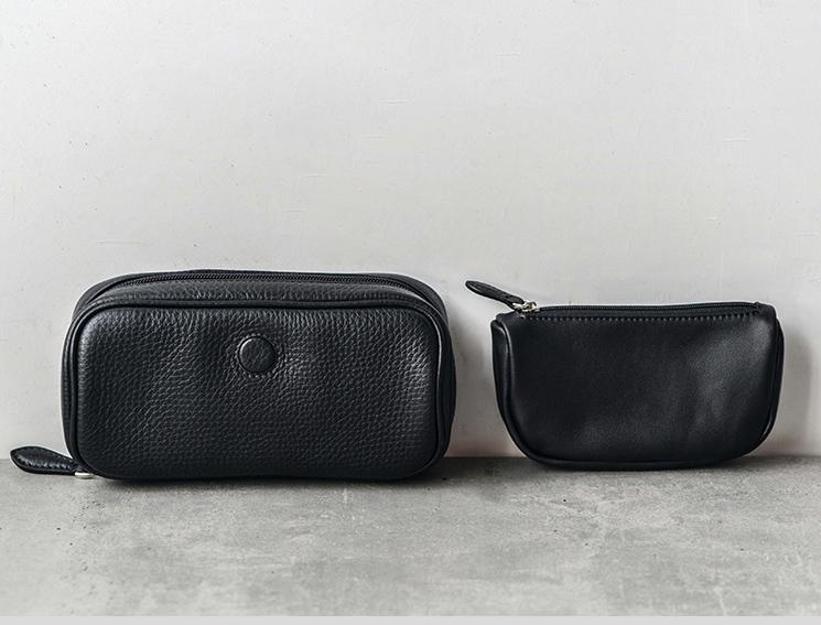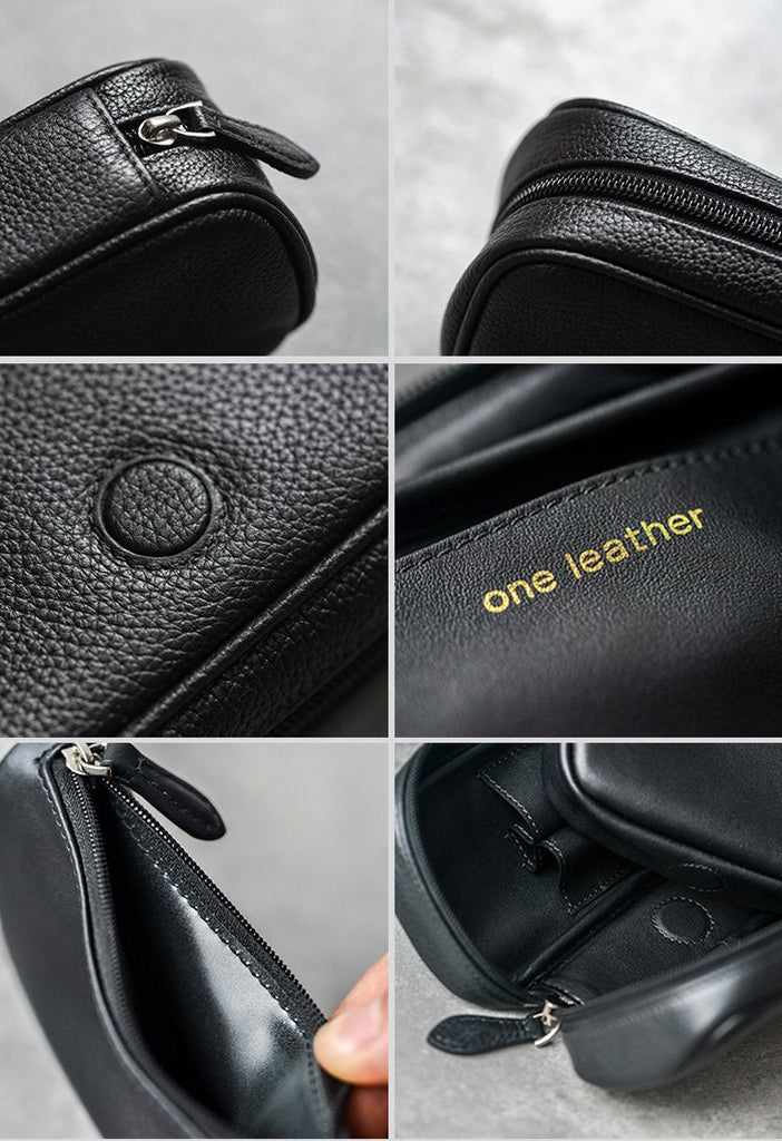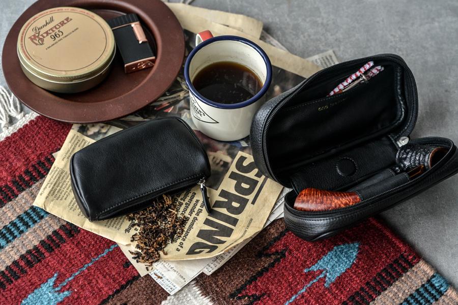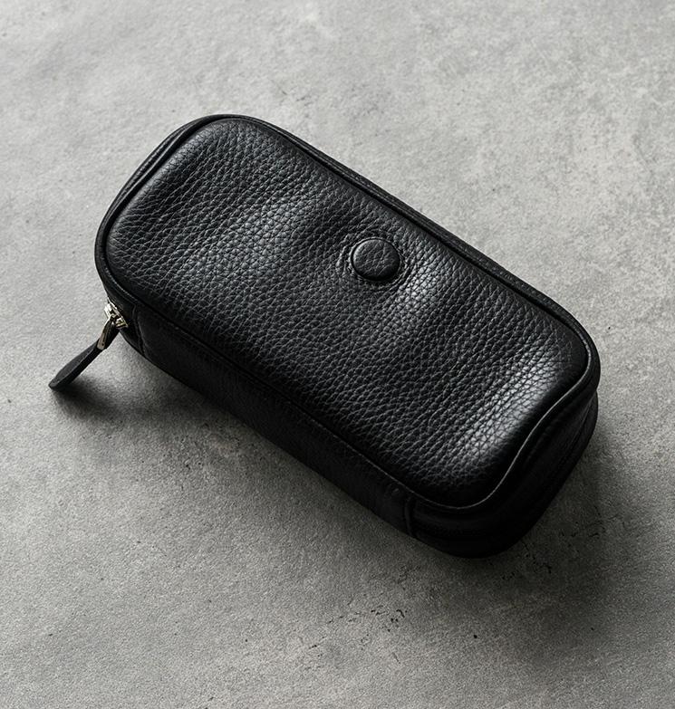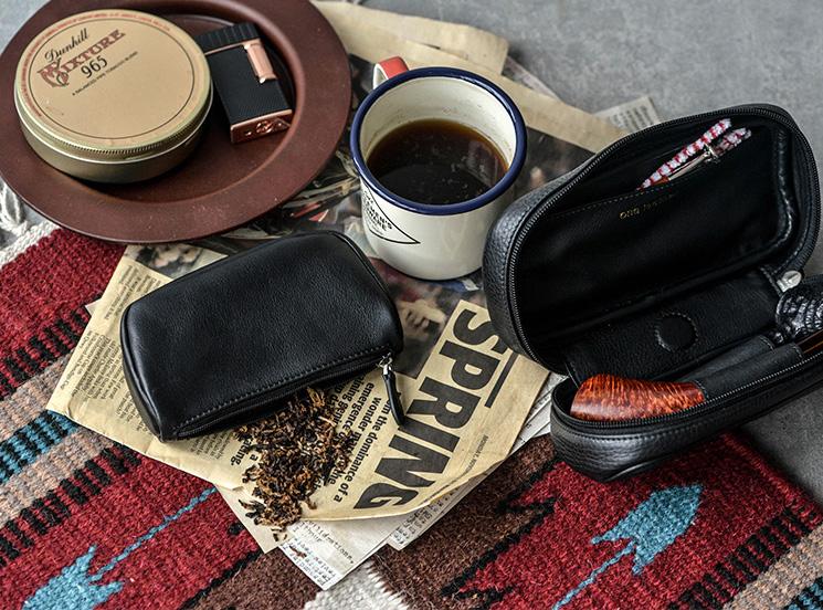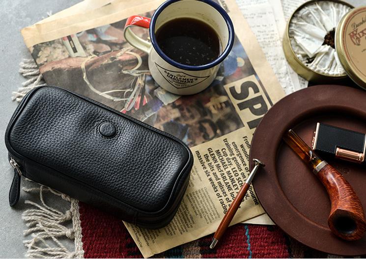 Design: Cool Leather Black Mens Leather 2pcs Tobacco Pipe Case Zipper Tobacco Pipe Case for Men