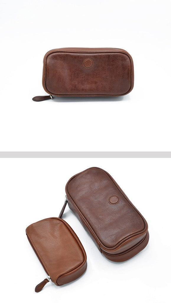 Style: Cool Leather Black Mens Leather 2pcs Tobacco Pipe Case Zipper Tobacco Pipe Case for Men