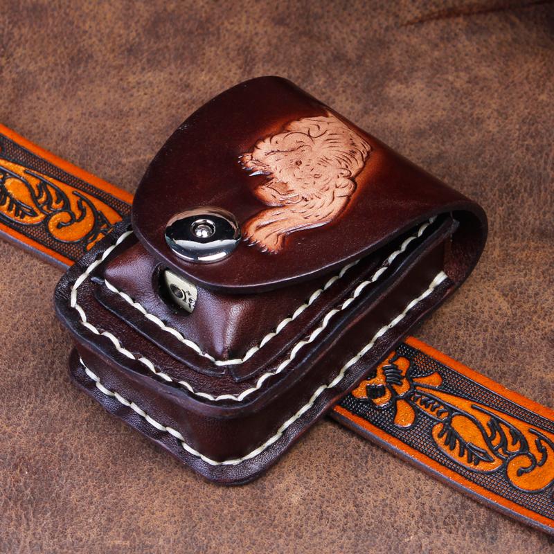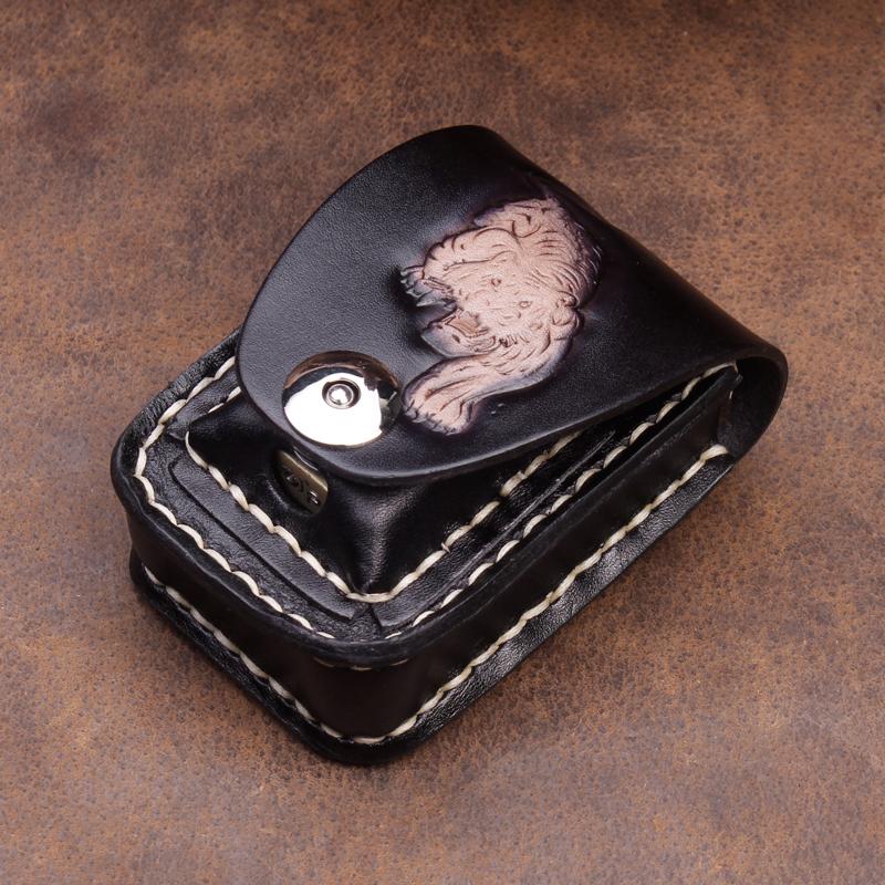 Design: Cool Leather Mens Engraved Tiger Cigarette Holder Case lighter Holder for Men