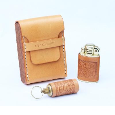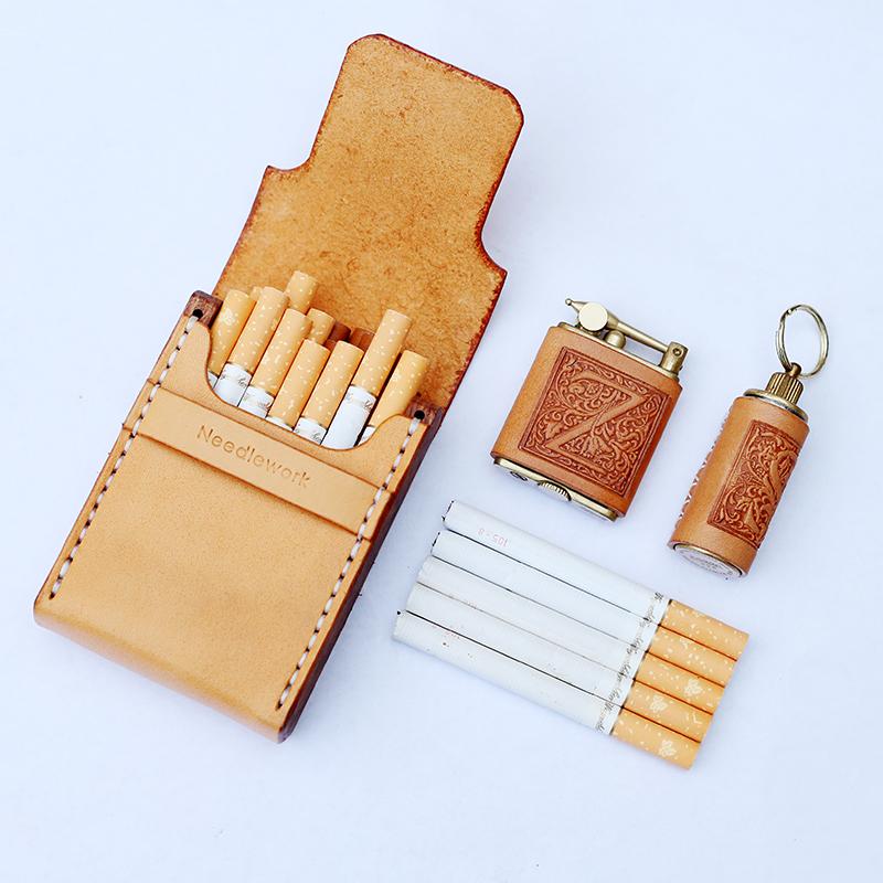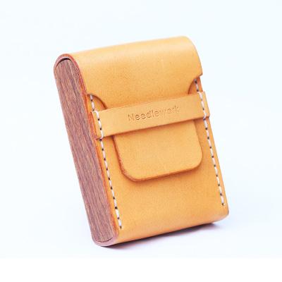 Design: Cool Wooden Beige Leather Mens 20pcs Cigarette Case Custom Cigarette Holder for Men