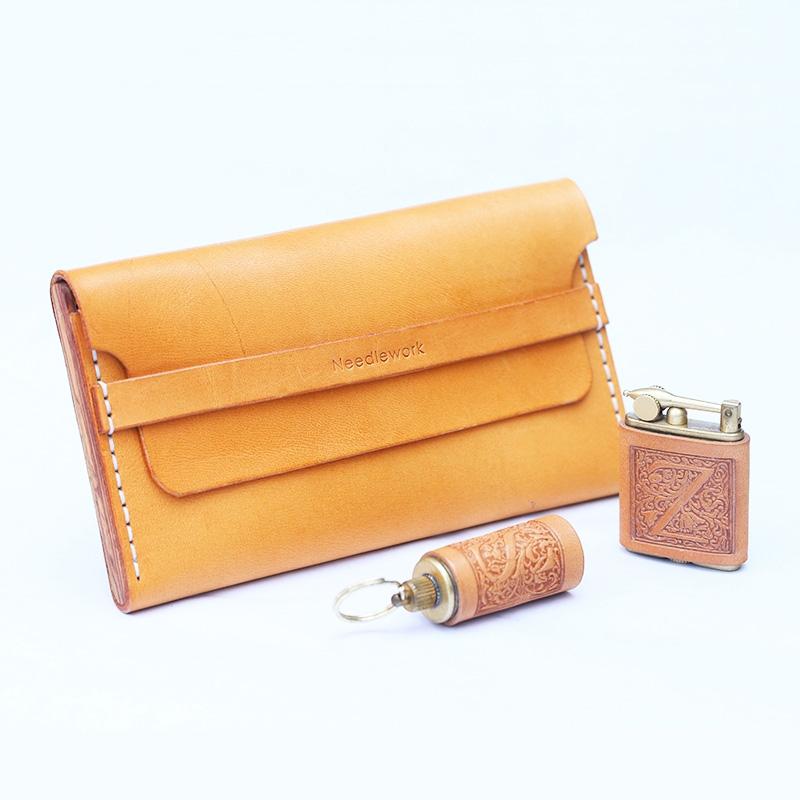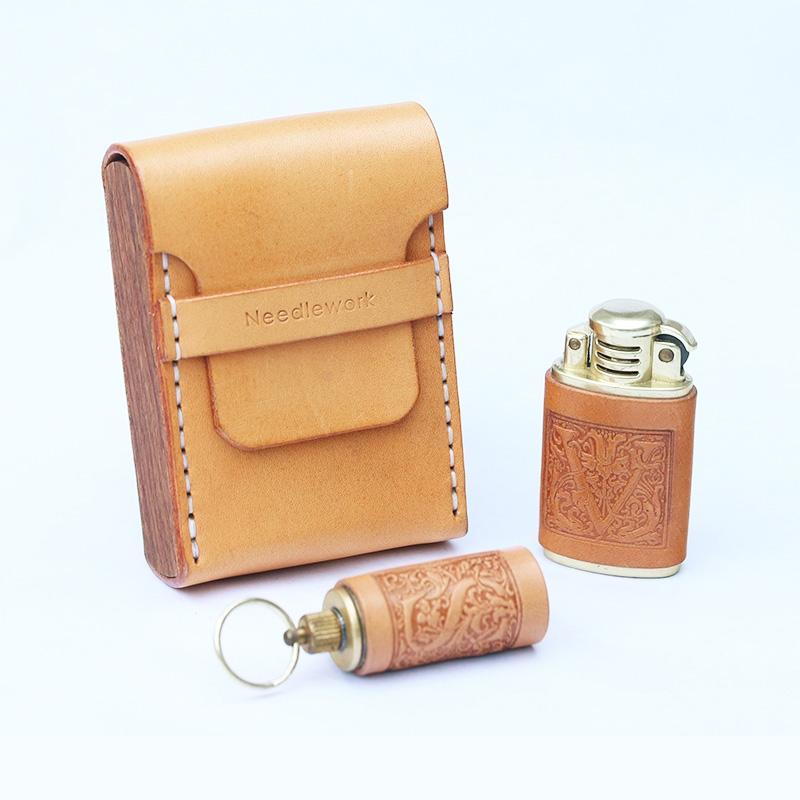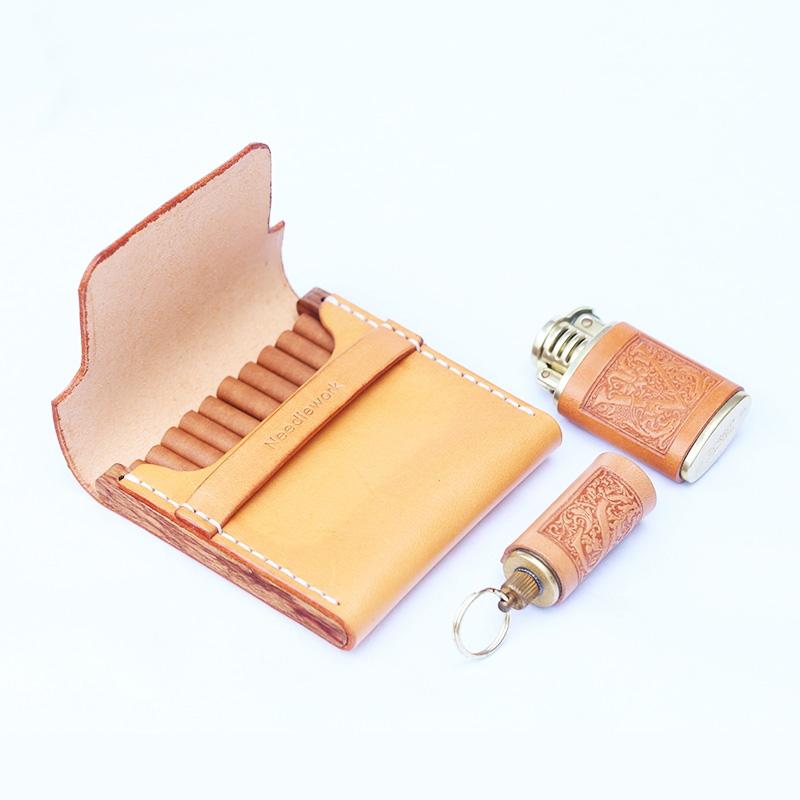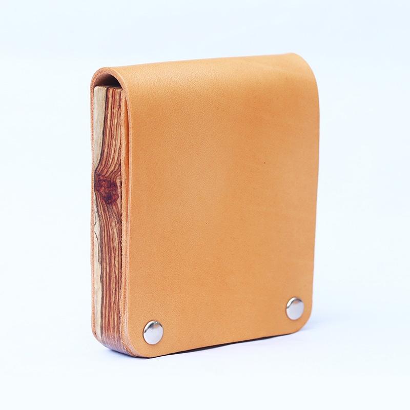 Style: Handmade Wooden Beige Leather Mens Cigarette Case Cool Custom Cigarette Holder for Men