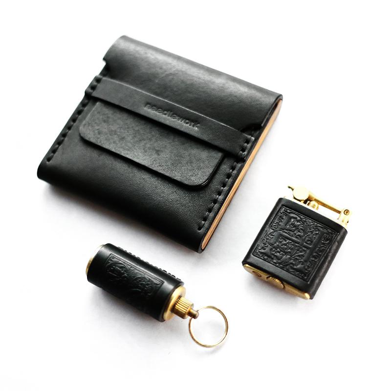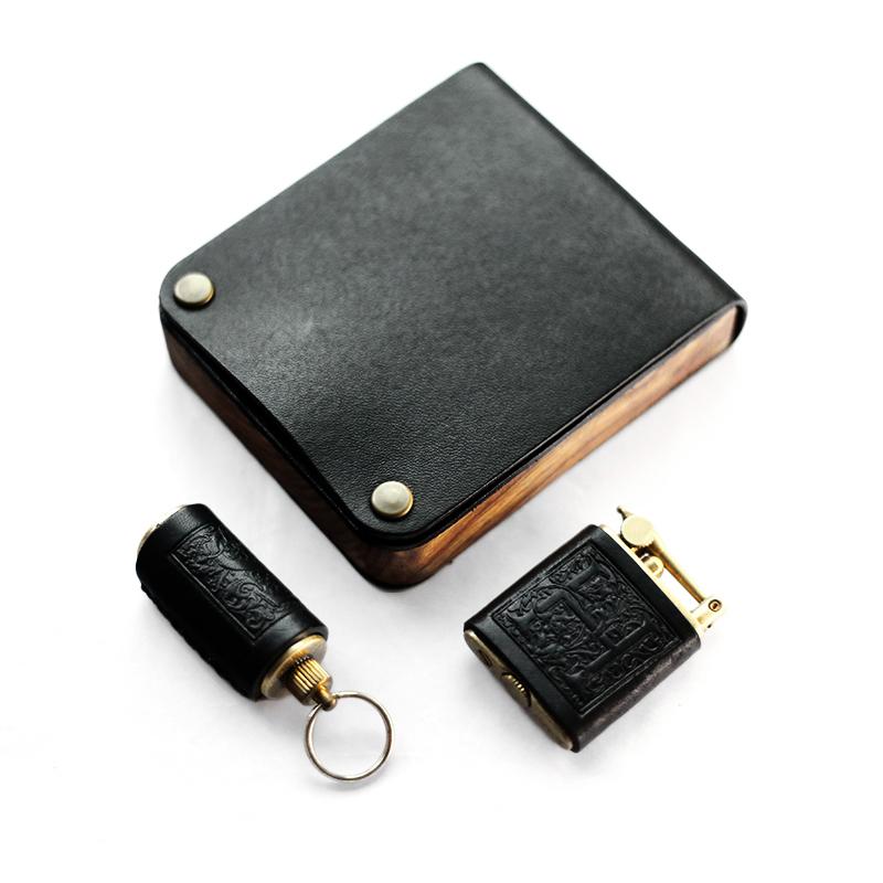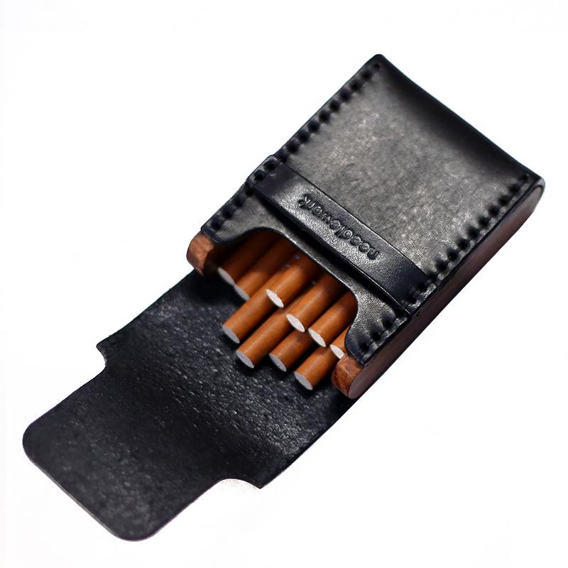 Design: Cool Wooden Black Leather Mens Cigarette Case Custom Cigarette Holder for Men