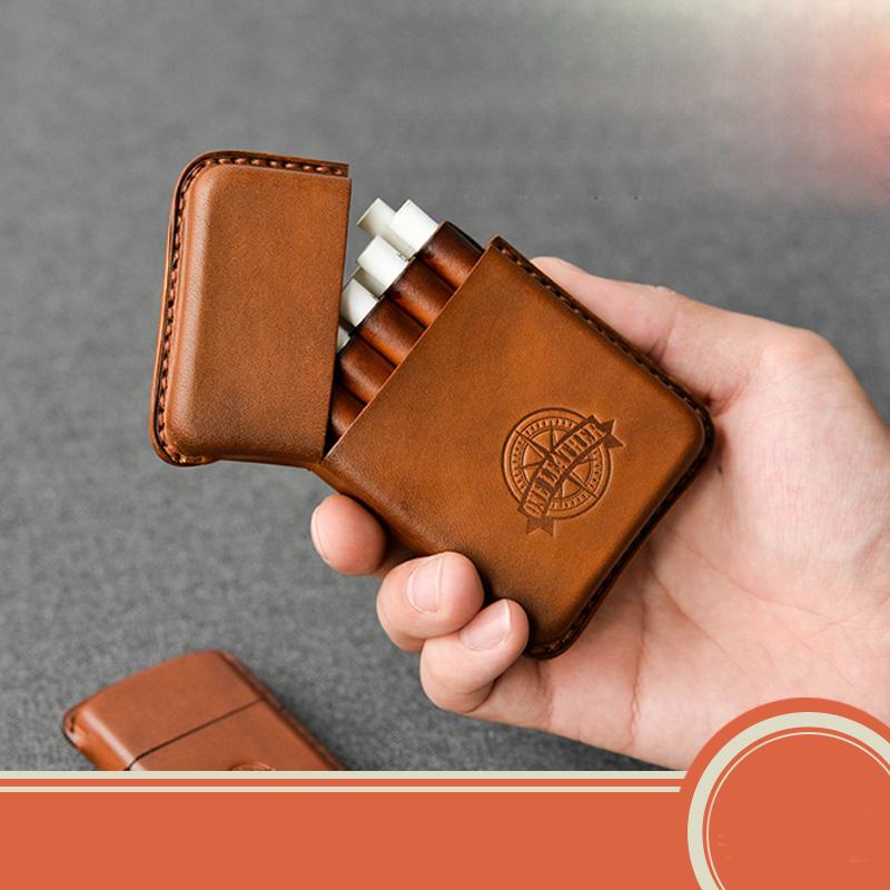 Style: Handmade Brown Leather Mens 10pcs Cigarette Holder Case Cool Custom Cigarette Case for Men