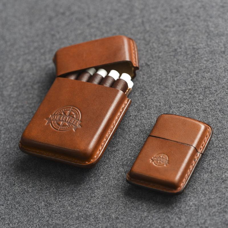 Design: Handmade Brown Leather Mens 10pcs Cigarette Holder Case Cool Custom Cigarette Case for Men