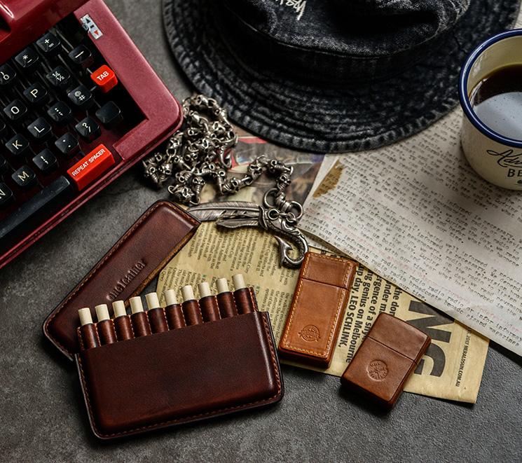 Style: Handmade Brown Leather Slim Mens 10pcs Cigarette Holder Case Cool Custom Cigarette Case for Men