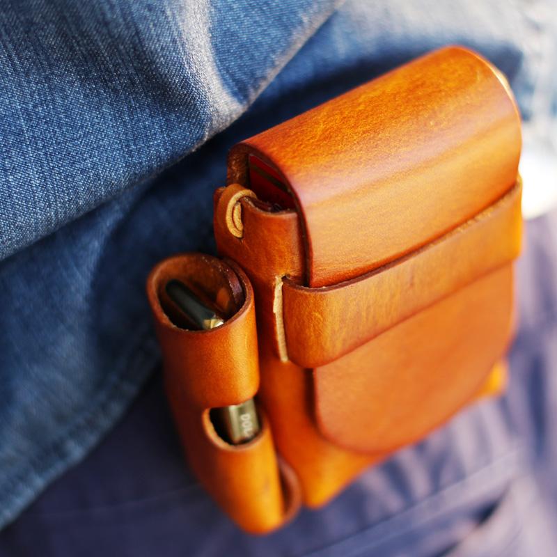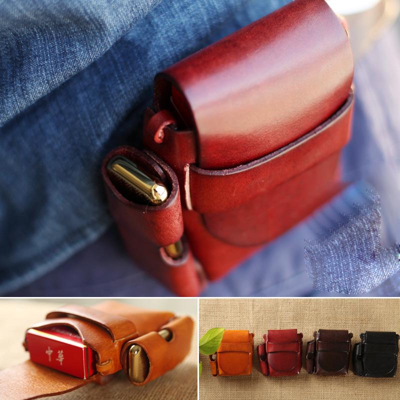 Design: Cool Brown Leather Mens Cigarette Case Cigarette Holder Belt Pouch with Belt Loop for Men