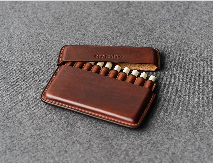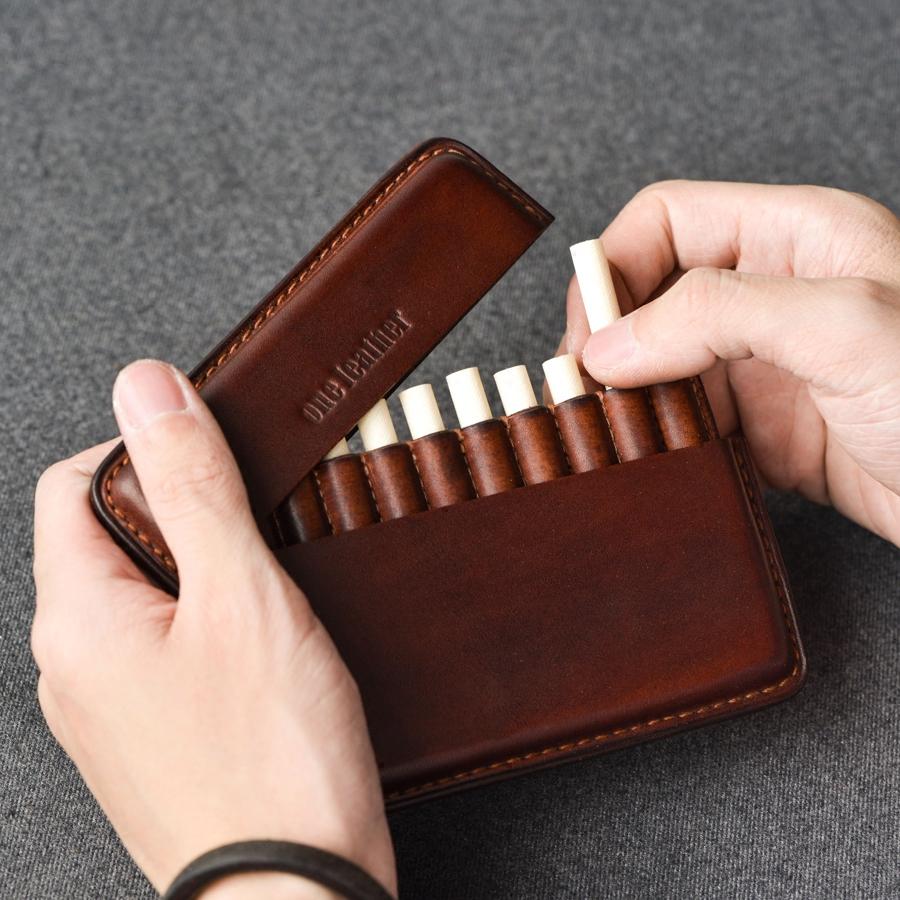 Style: Handmade Brown Leather Slim Mens 10pcs Cigarette Holder Case Cool Custom Cigarette Case for Men