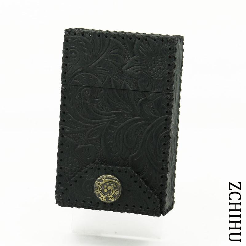 Design: Handmade Cool Leather Mens Black Engraved Cigarette Holder Case Cigarette Holder for Men