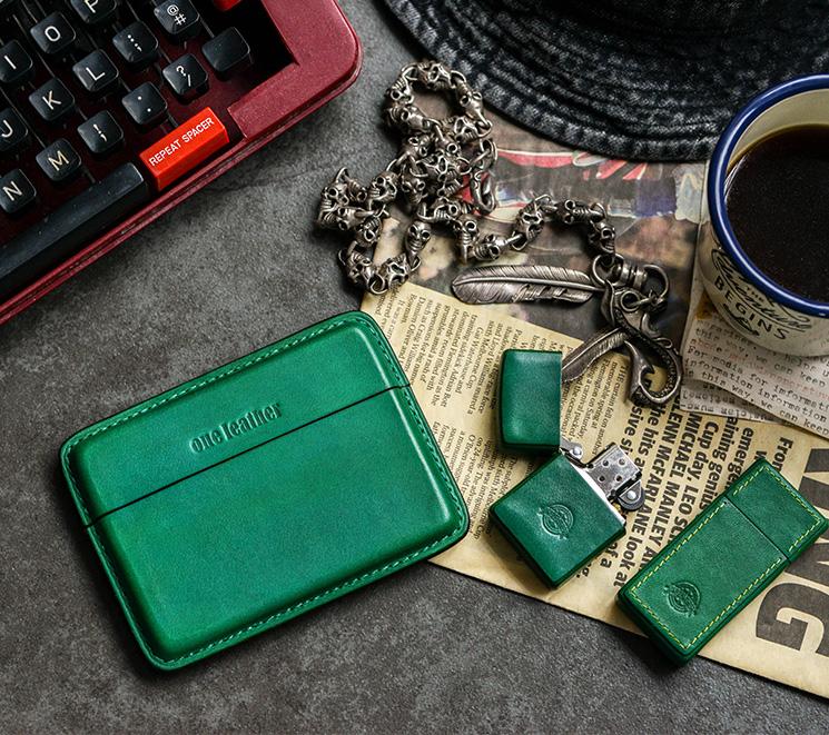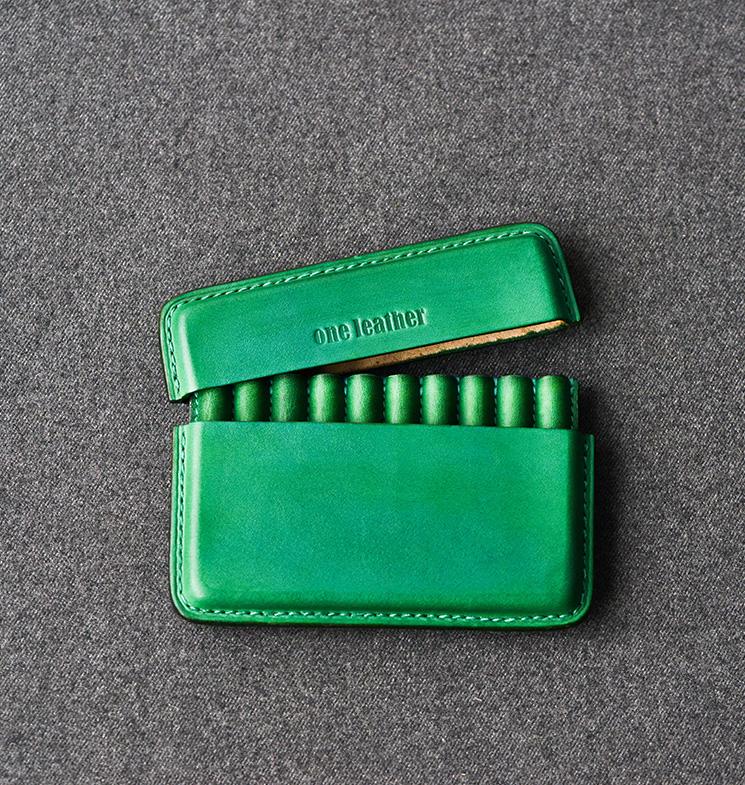 Handmade Green Leather Slim Mens 10pcs Cigarette Holder Case Cool Custom Cigarette Case for Men