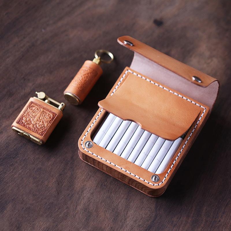 Style: Handmade Wooden Leather Mens 7pcs Cigarette Case Cool Custom Cigarette Holder for Men