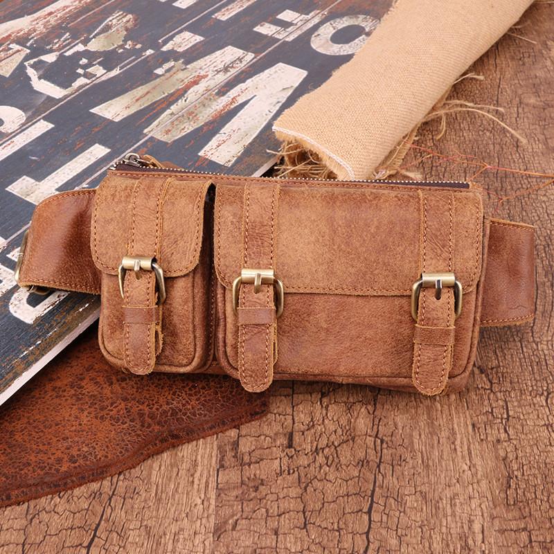 Design: Badass Leather Fanny Pack Men's Brown Hip Bag Chest Bag Bum Bag Waist Bag For Men