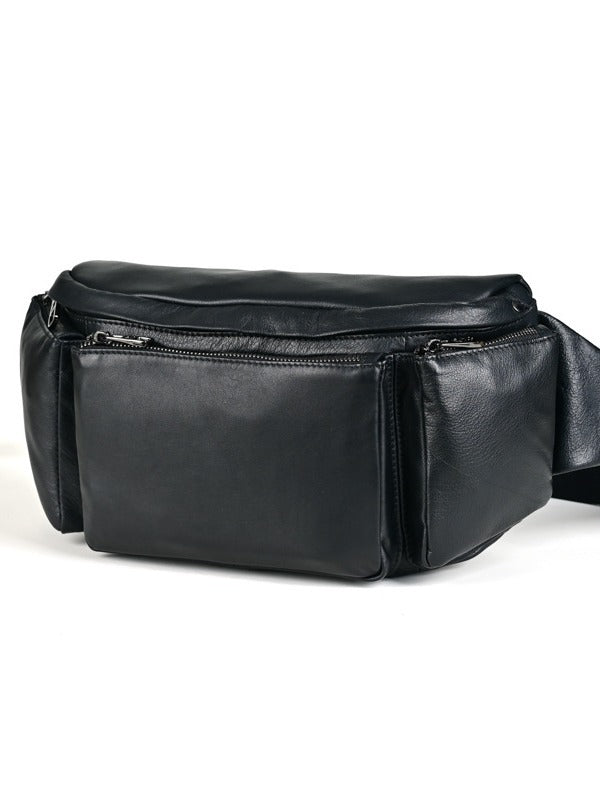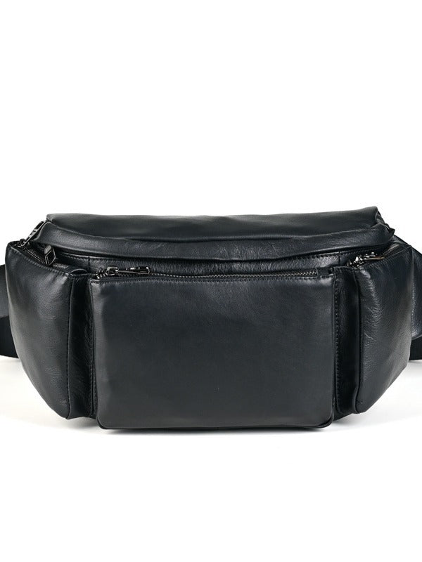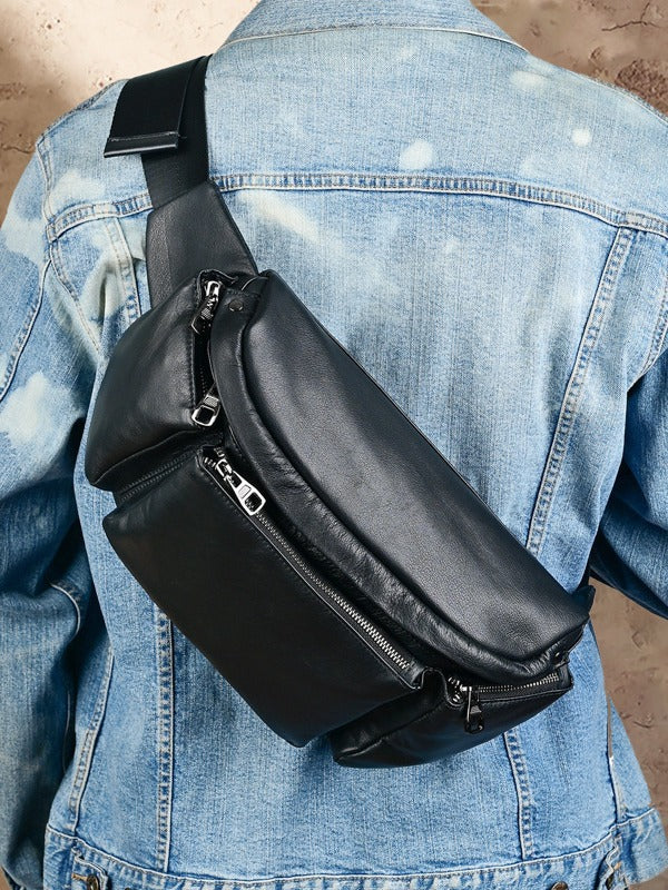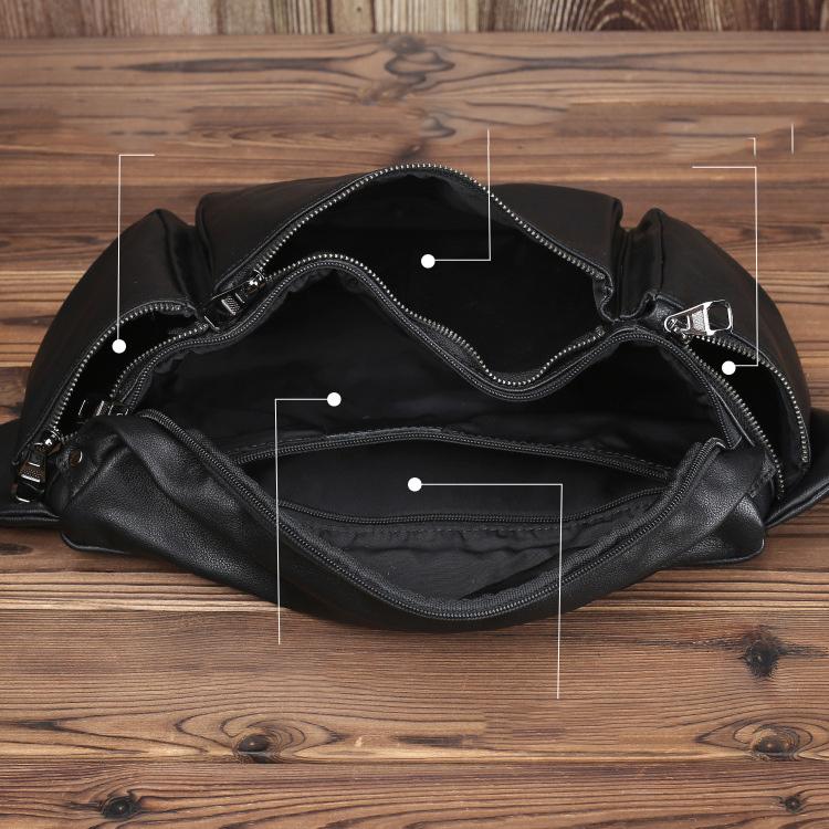 Style: Badass Leather Fanny Pack Men's Black Chest Bag Hip Bag Large Capacity Waist Bag For Men