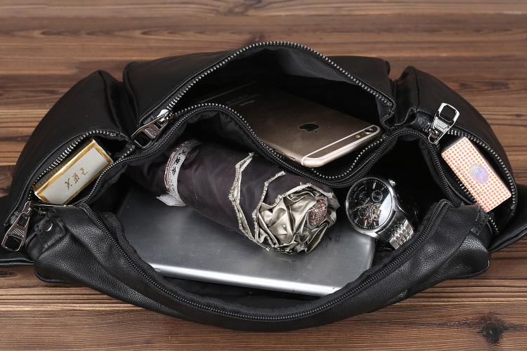The large black leather fanny pack for men is the epitome of style and practicality, combining a sleek, modern design with ample storage space. Measuring 36cm x 12cm x 18cm, this roomy accessory is perfect for men who need to carry more than just the essentials without sacrificing style. Its versatile design allows it to be worn as a traditional fanny pack, sling bag, chest bag, shoulder bag, or even a crossbody fanny pack, making it an ideal choice for various occasions, from daily errands to travel adventures.