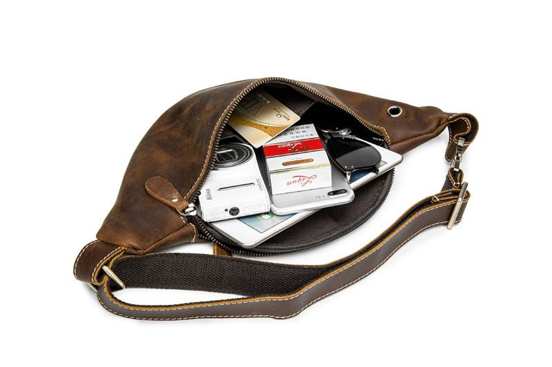 Brown Leather Fanny Pack Men's Chest Bag Leather Hip Pack Leather Waist Bag For Men