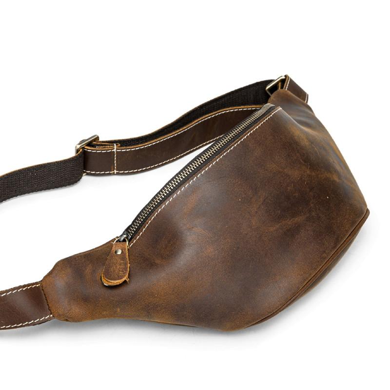 Design: Brown Leather Fanny Pack Men's Chest Bag Leather Hip Pack Leather Waist Bag For Men