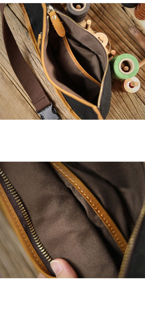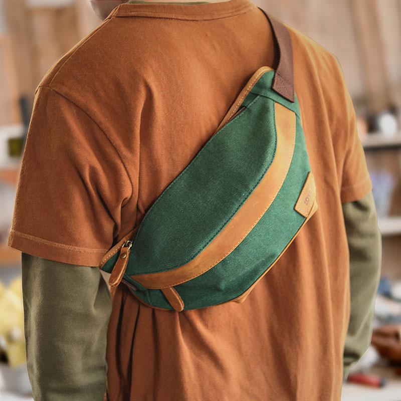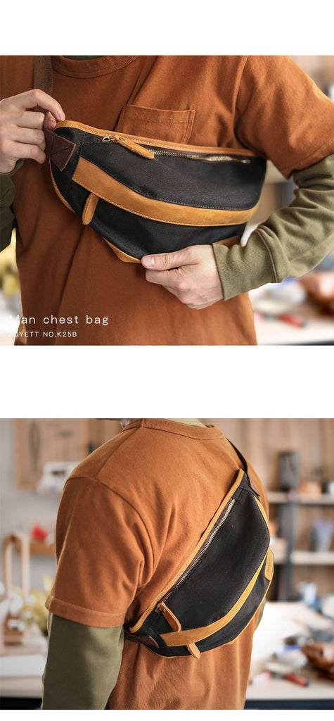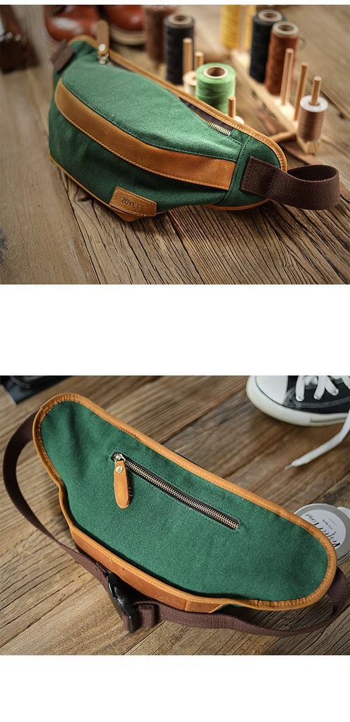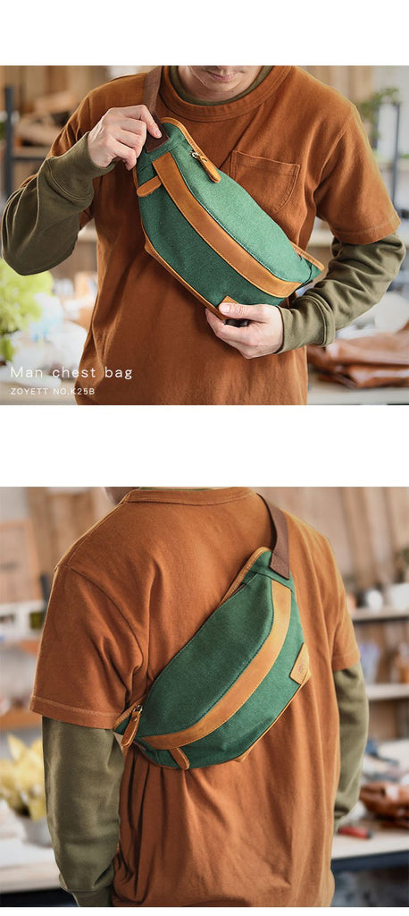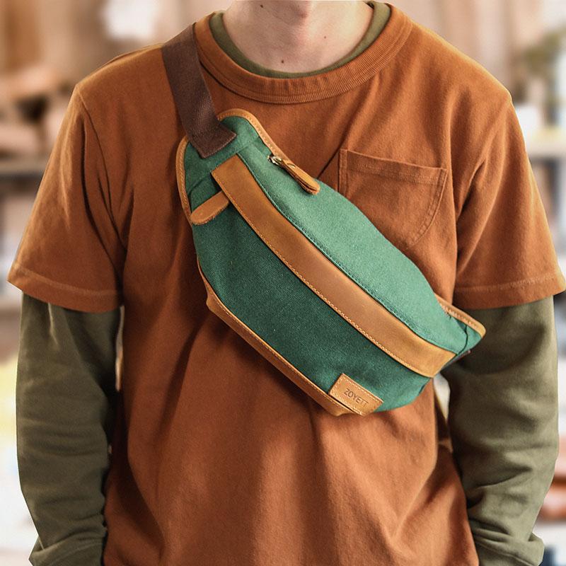Design: Black Cool Leather Mens Chest Bag Green Waist Bag Fanny Pack Hip Bag Bum Pack For Men