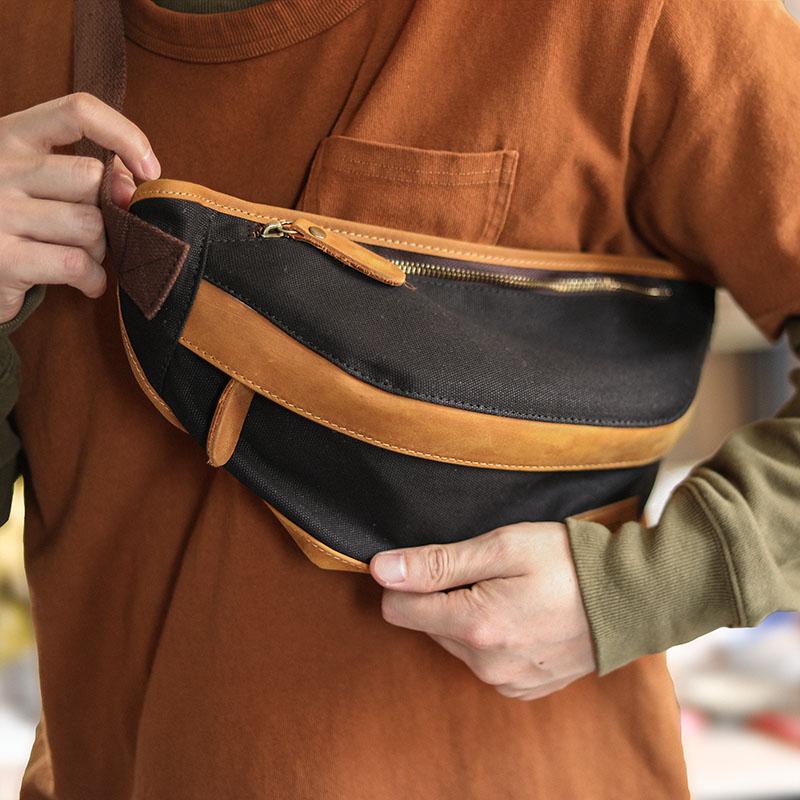 Style: Black Cool Leather Mens Chest Bag Green Waist Bag Fanny Pack Hip Bag Bum Pack For Men