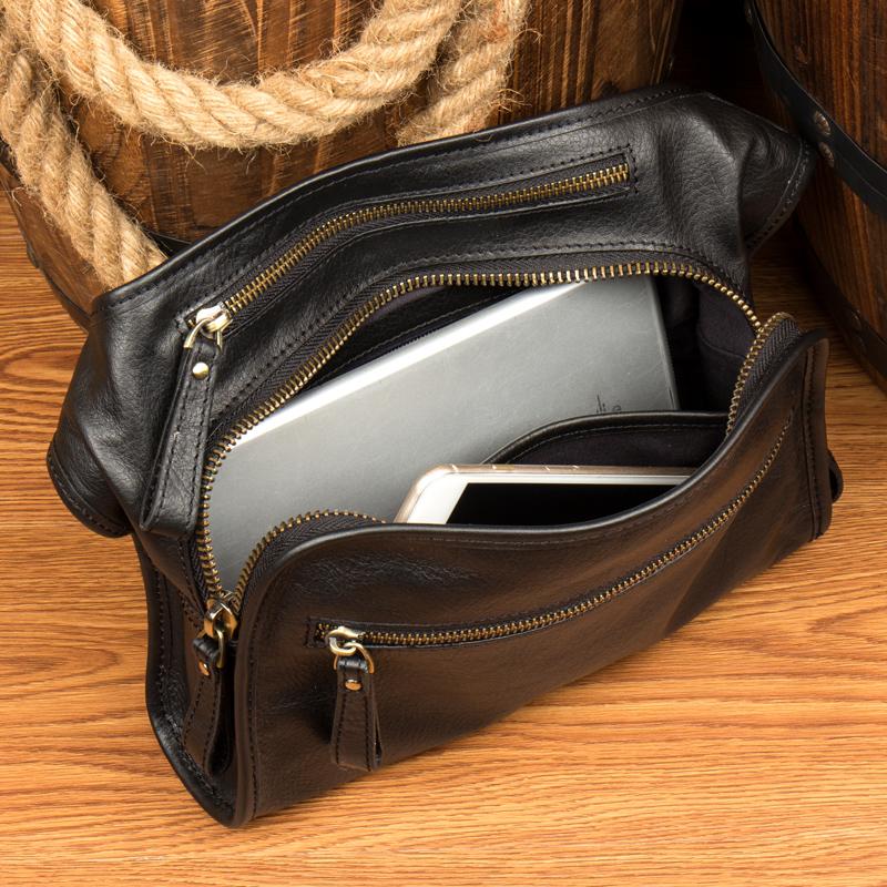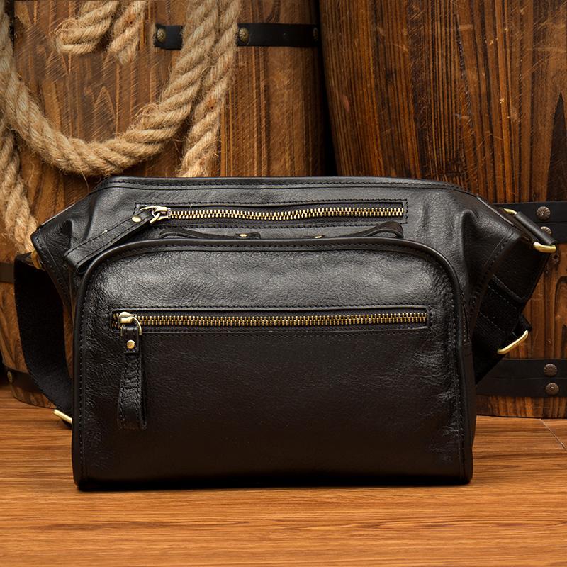 Design: Black Leather Fanny Pack Mens Waist Bag Hip Pack Belt Bag Bumbag for Men