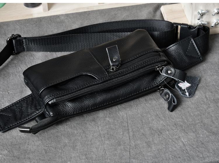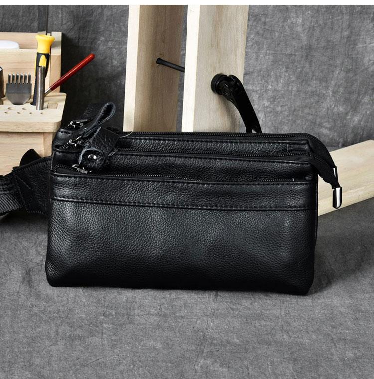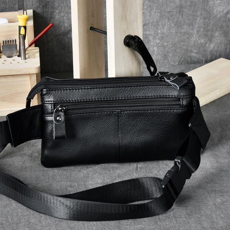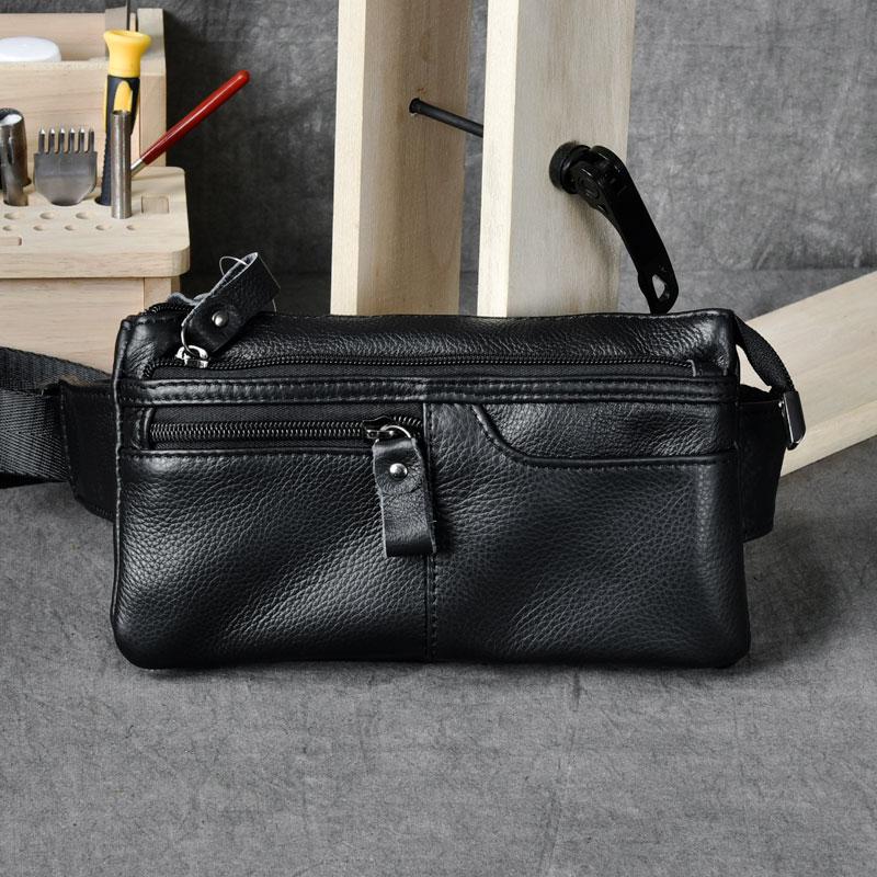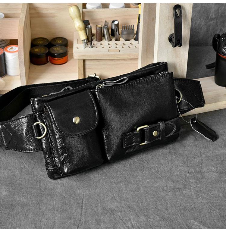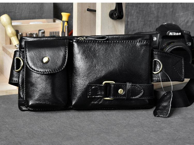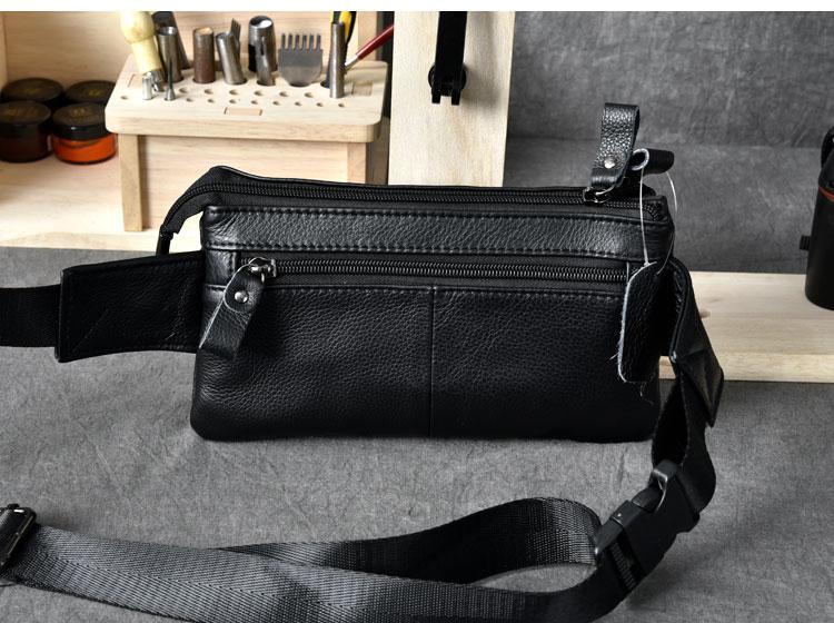 Design: Black Leather Fanny Pack Mens Waist Bag Hip Pack Belt Bag for Men
