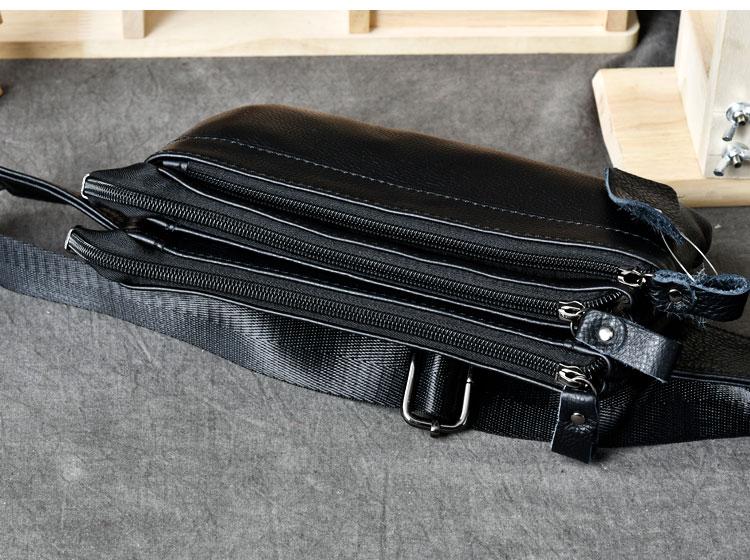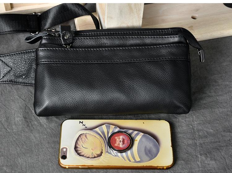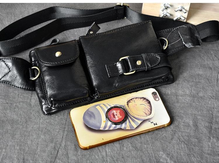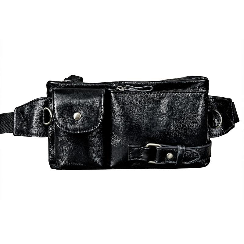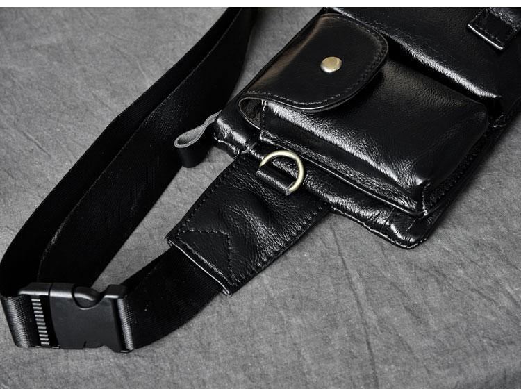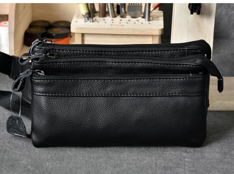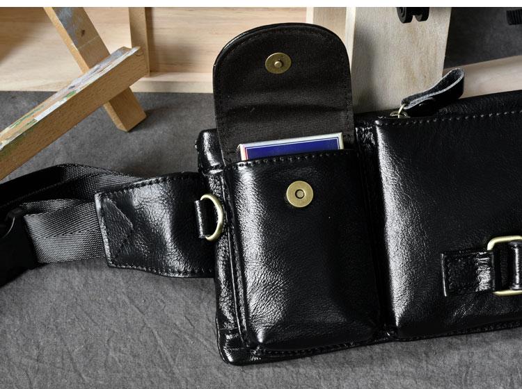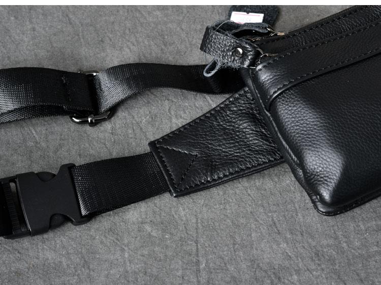Design: Black Leather Fanny Pack Mens Waist Bag Hip Pack Belt Bag for Men