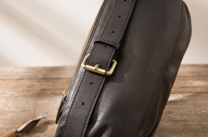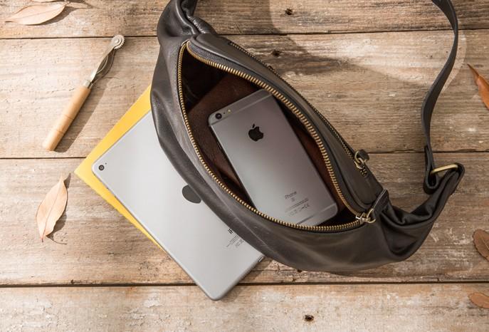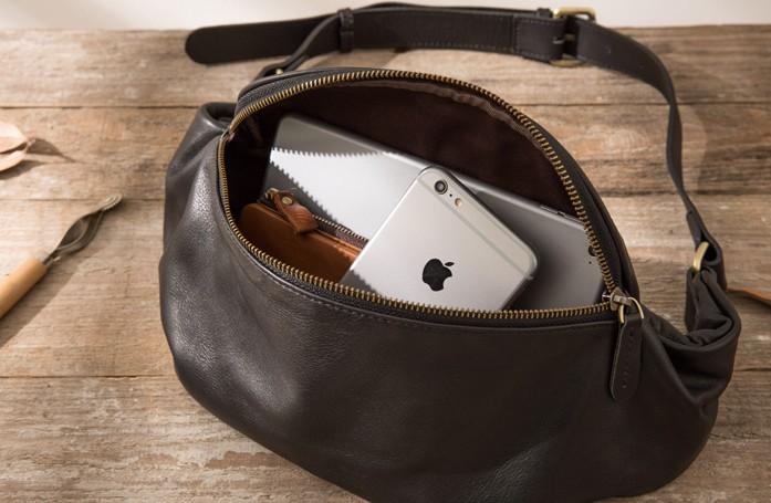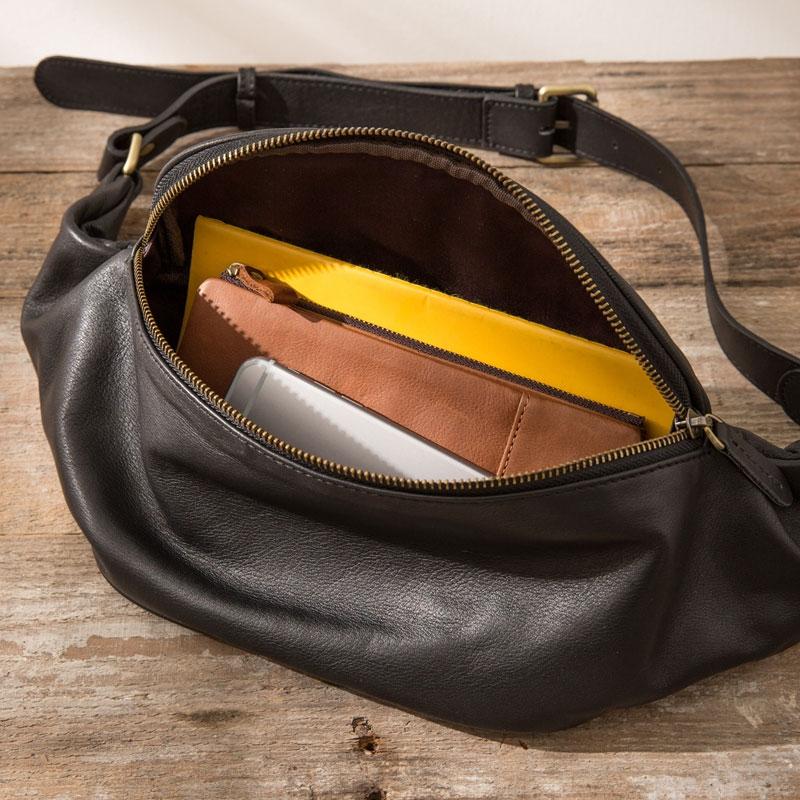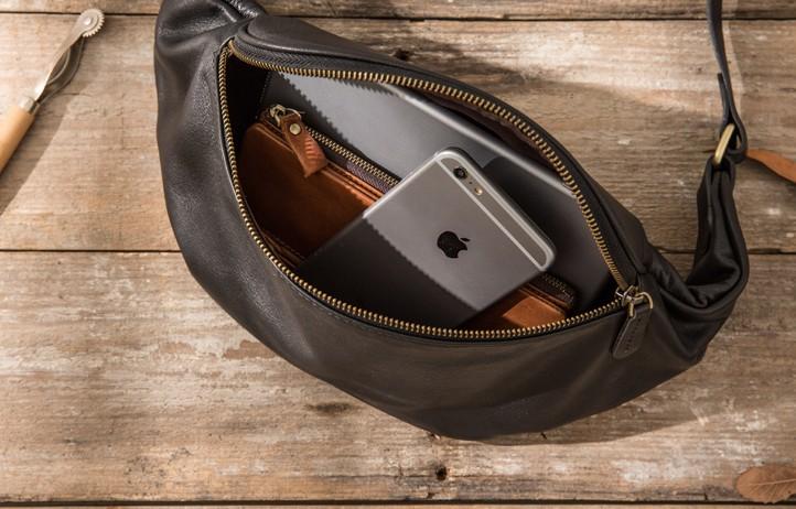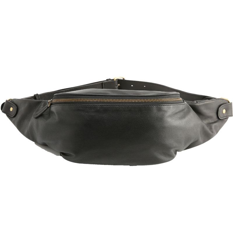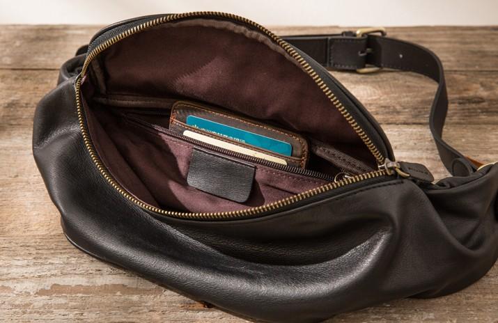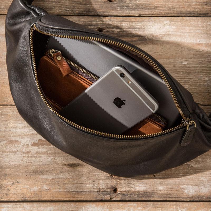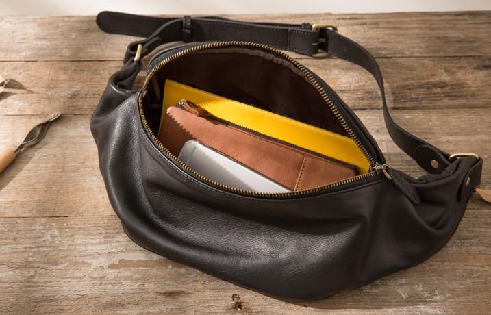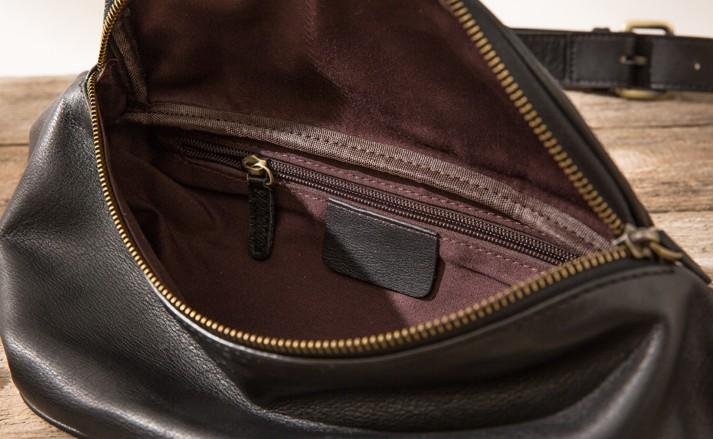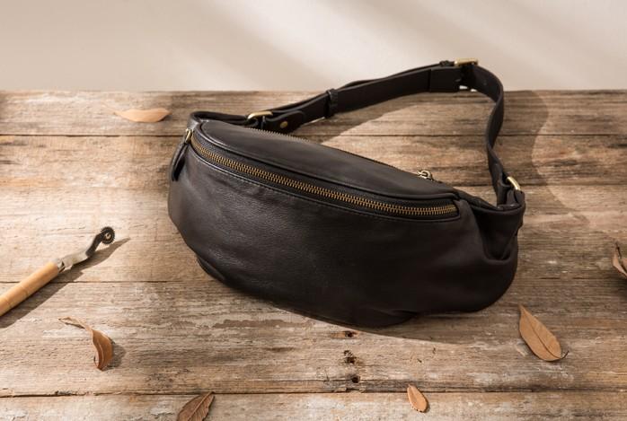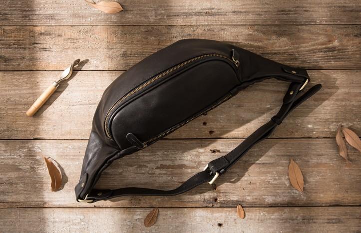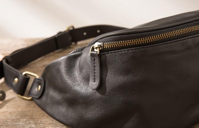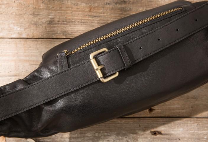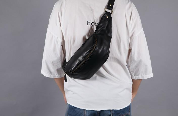 Design: Black Leather Fanny Packs Mens Waist Bag Hip Pack Belt Bag for Men