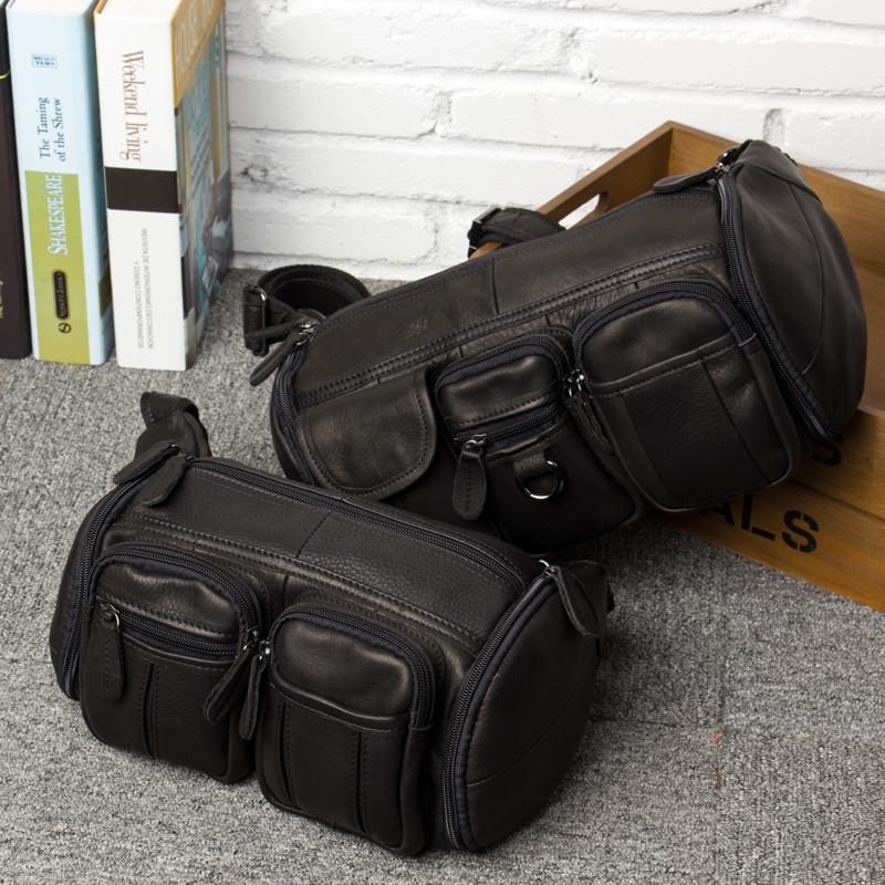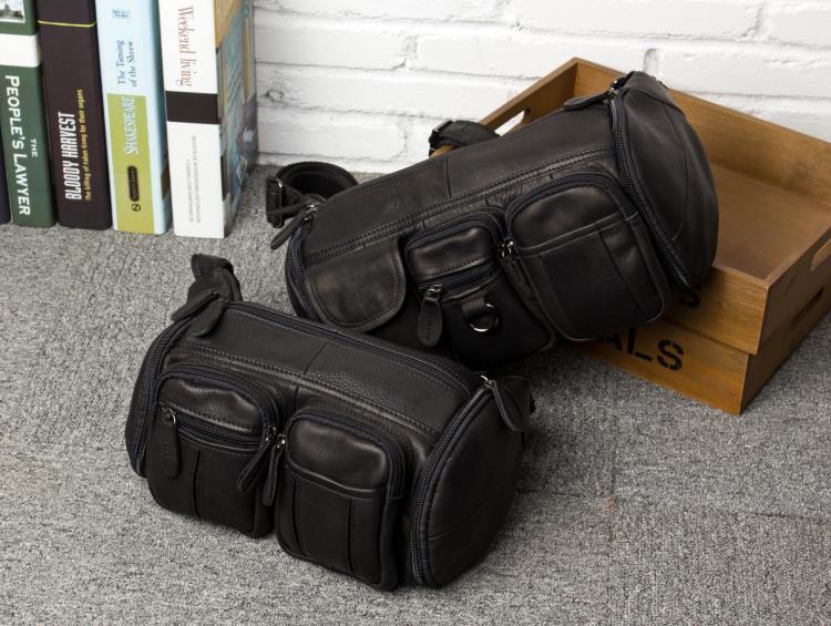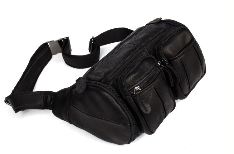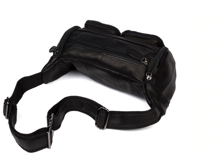Design:Black Leather Mens Fanny Pack Waist Bag Hip Pack Belt Bag Bumbag for Men