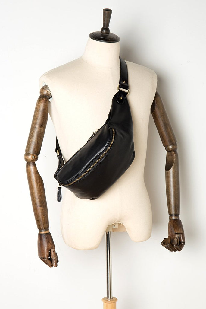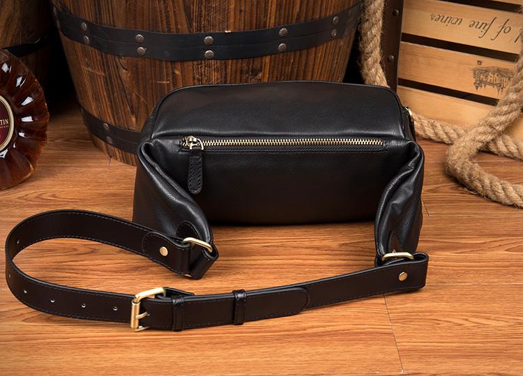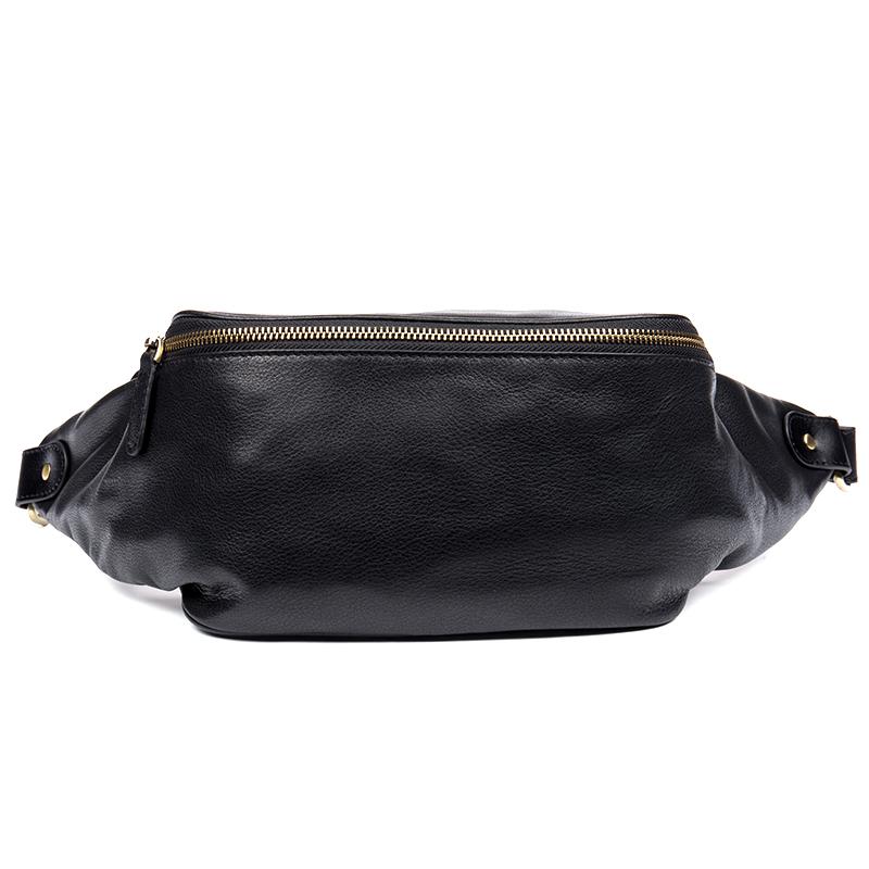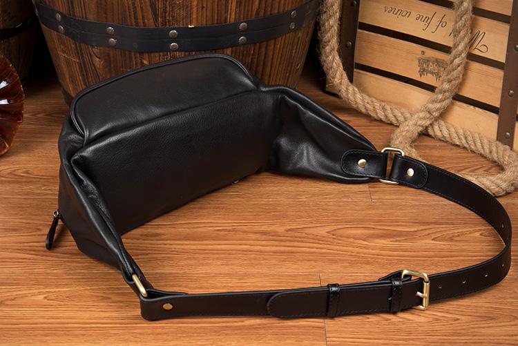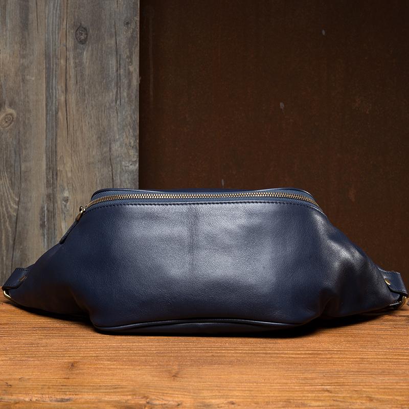 Design: Black Leather Mens Fanny Pack Waist Bag Hip Pack Blue Belt Bag Bumbag for Men
