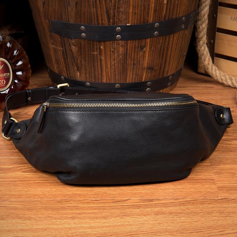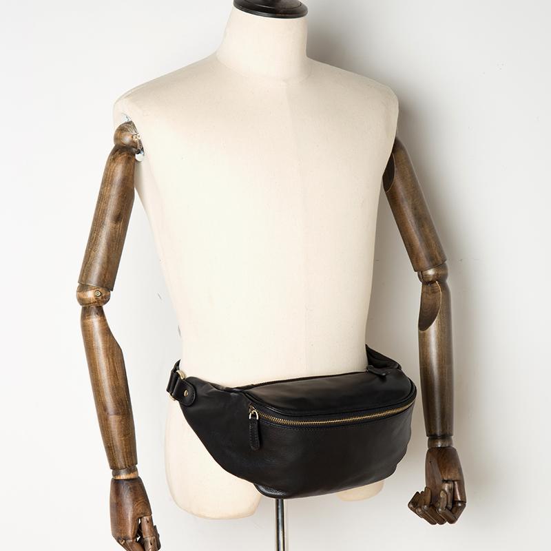 Style: Black Leather Mens Fanny Pack Waist Bag Hip Pack Blue Belt Bag Bumbag for Men