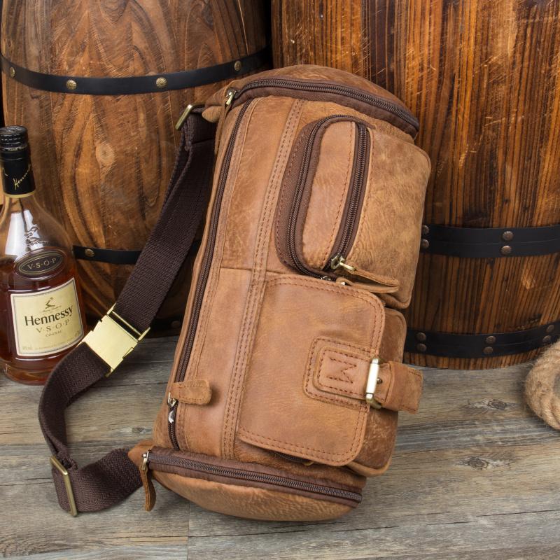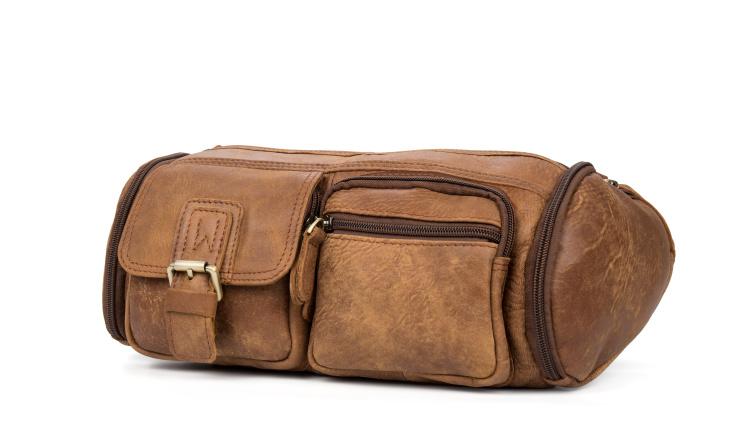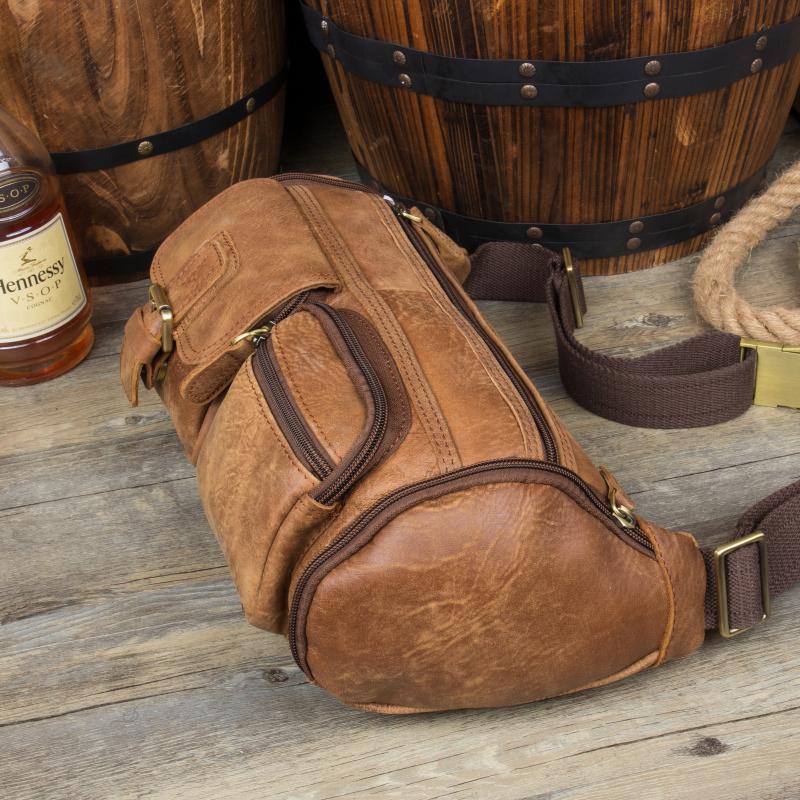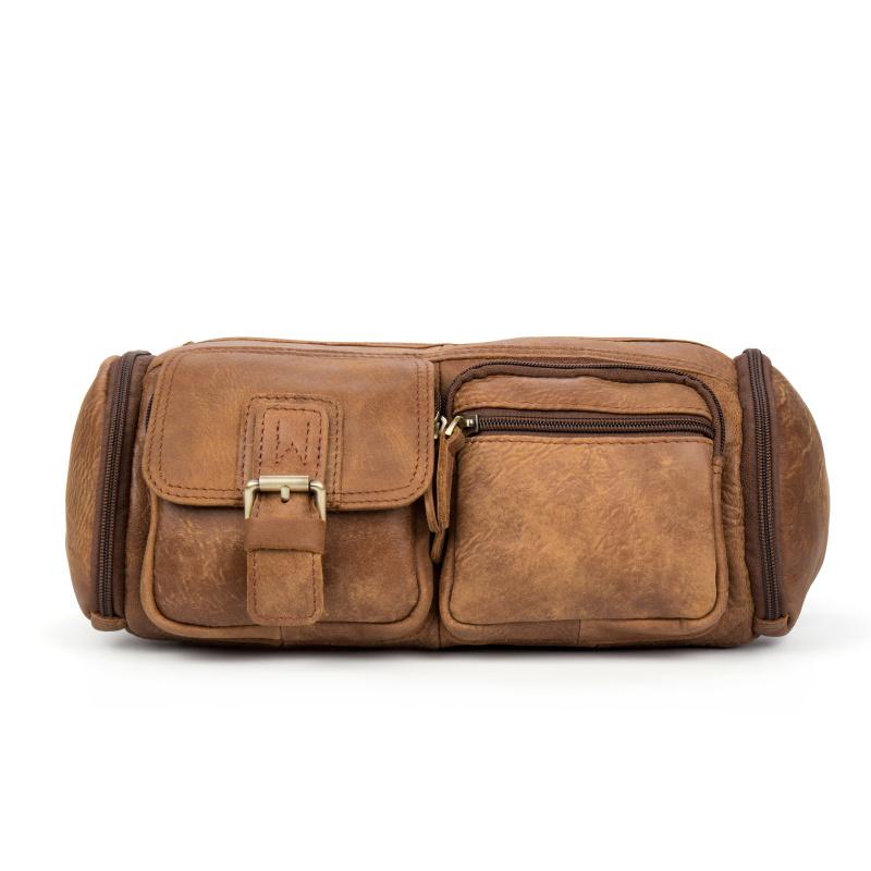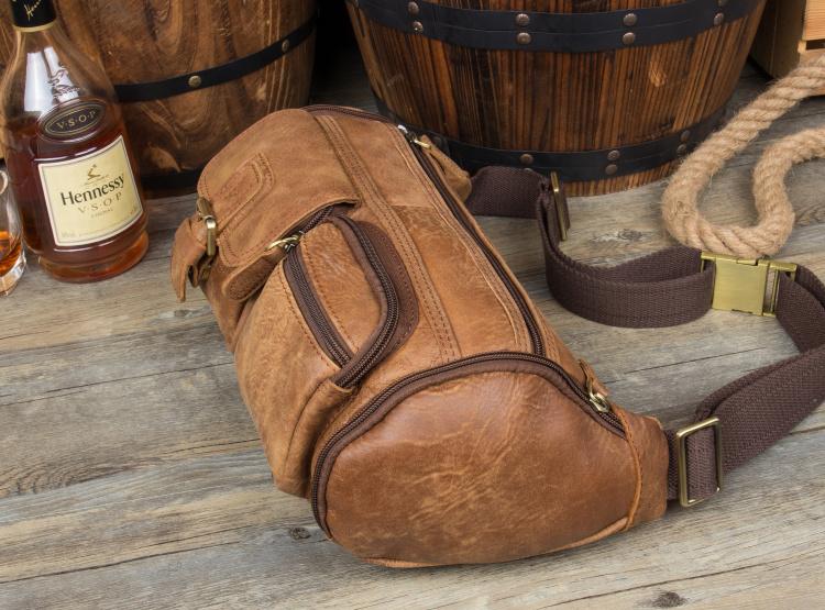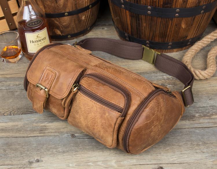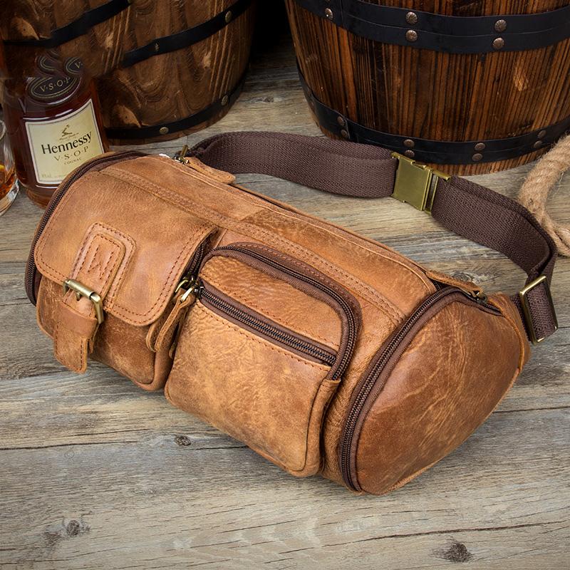 Design: Brown Leather Fanny Pack Mens 8 inches Waist Bag Hip Pack Belt Bags Bumbags for Menn