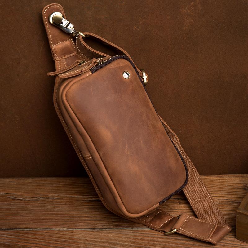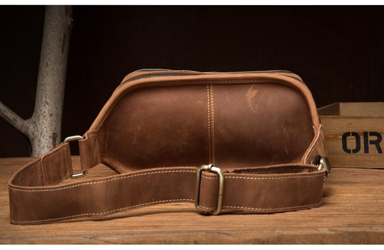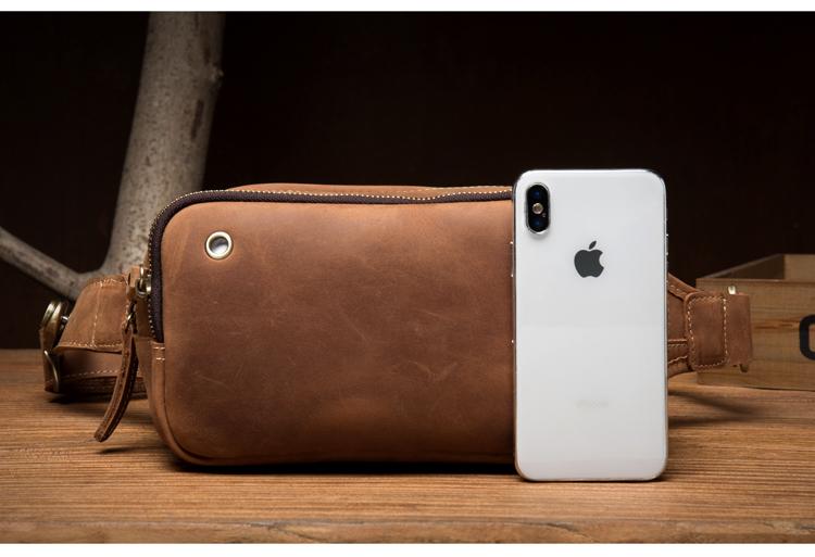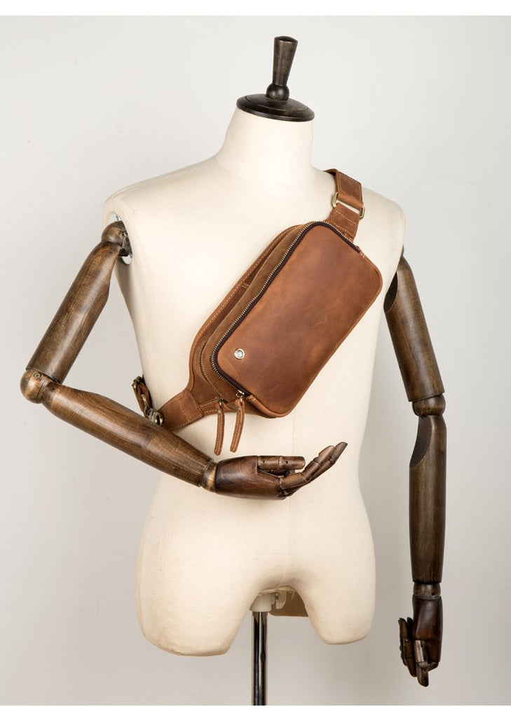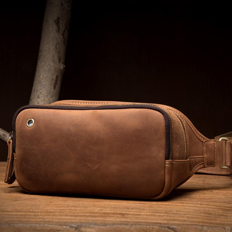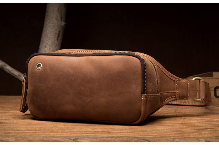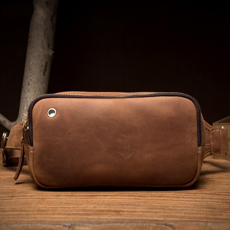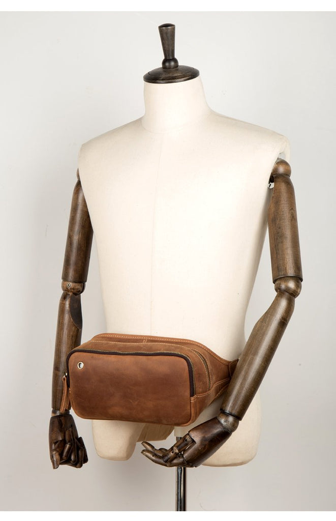 Design: Brown Leather Fanny Pack Mens Waist Bag Hip Pack Belt Bags Bumbags for Men