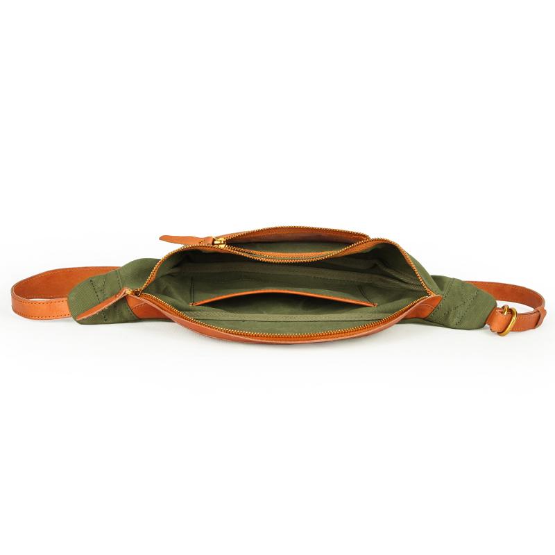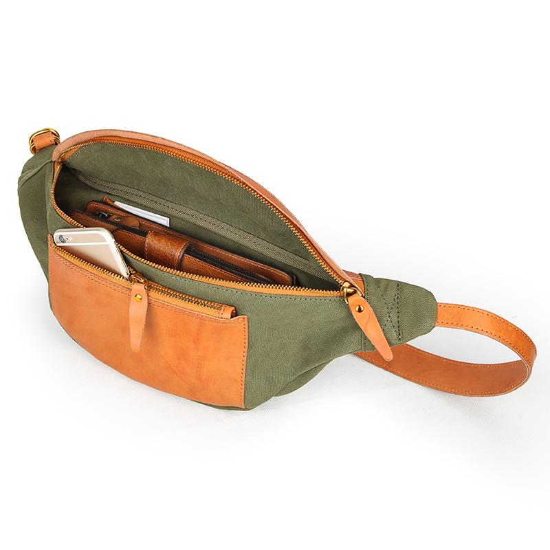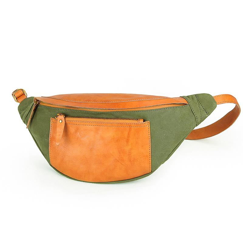 Canvas Leather Mens Caramel Waist Bag Army Green Fanny Pack Hip pack Chest Bag For Men