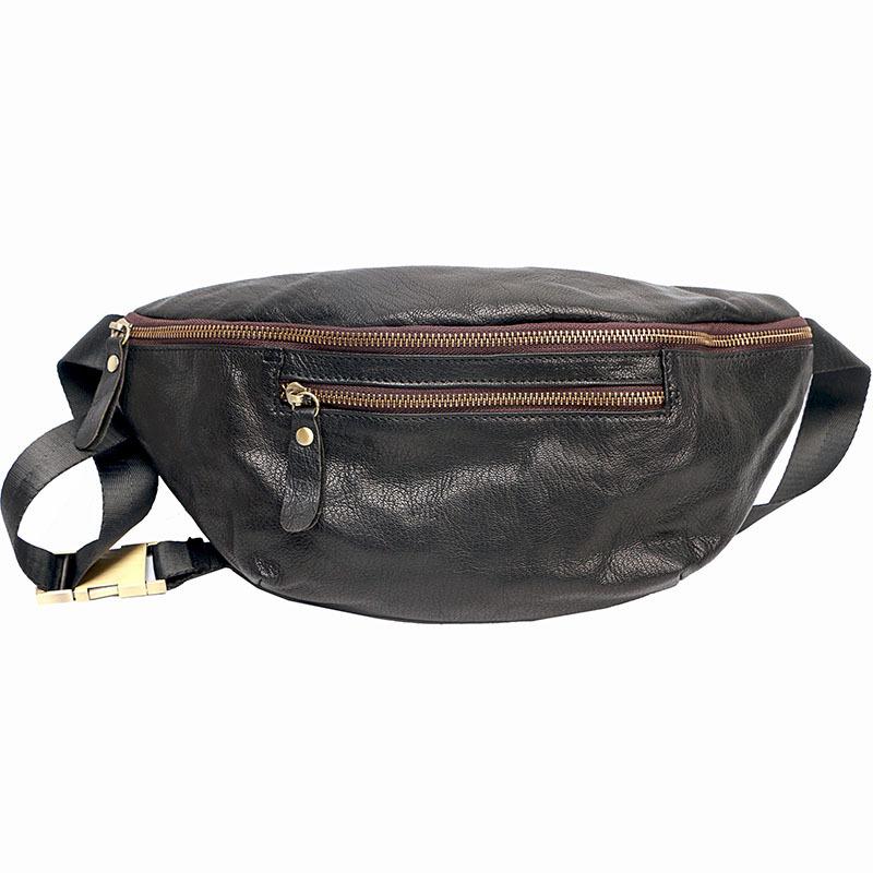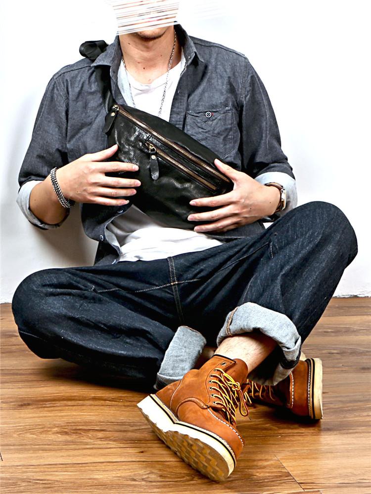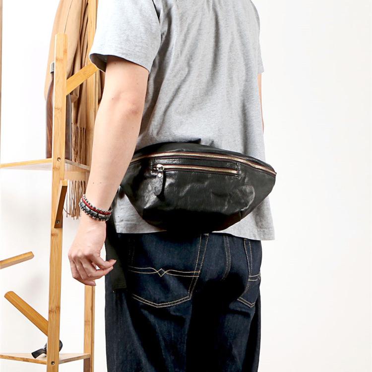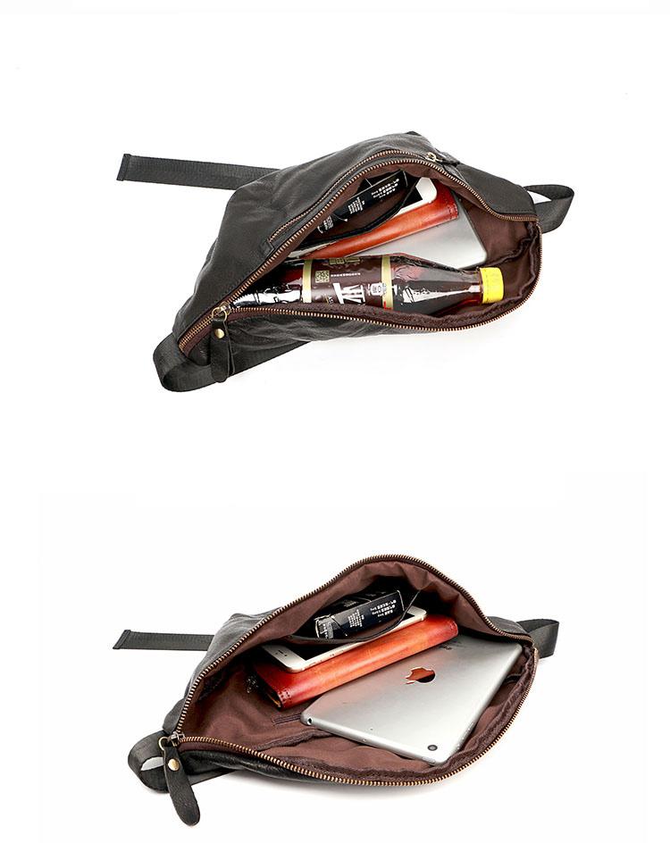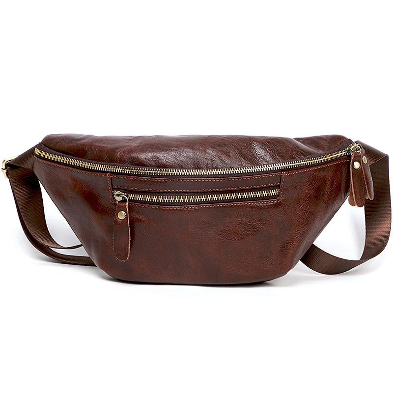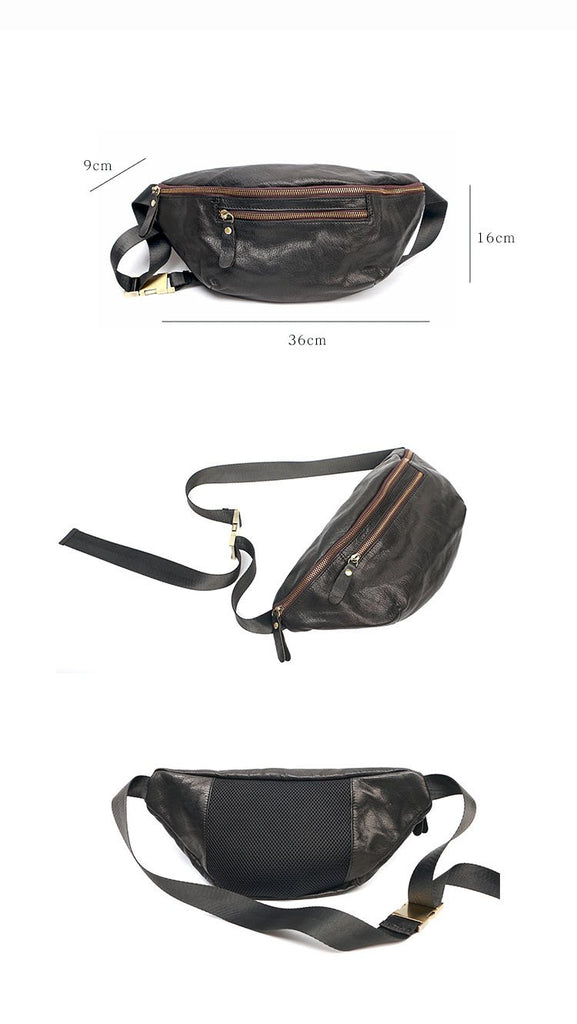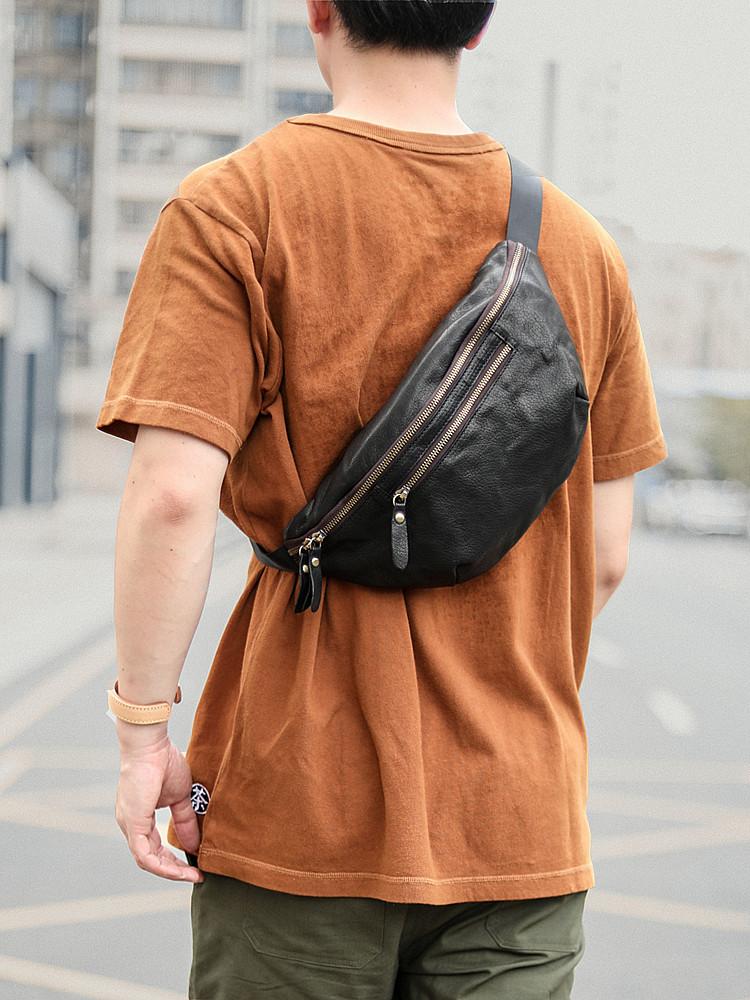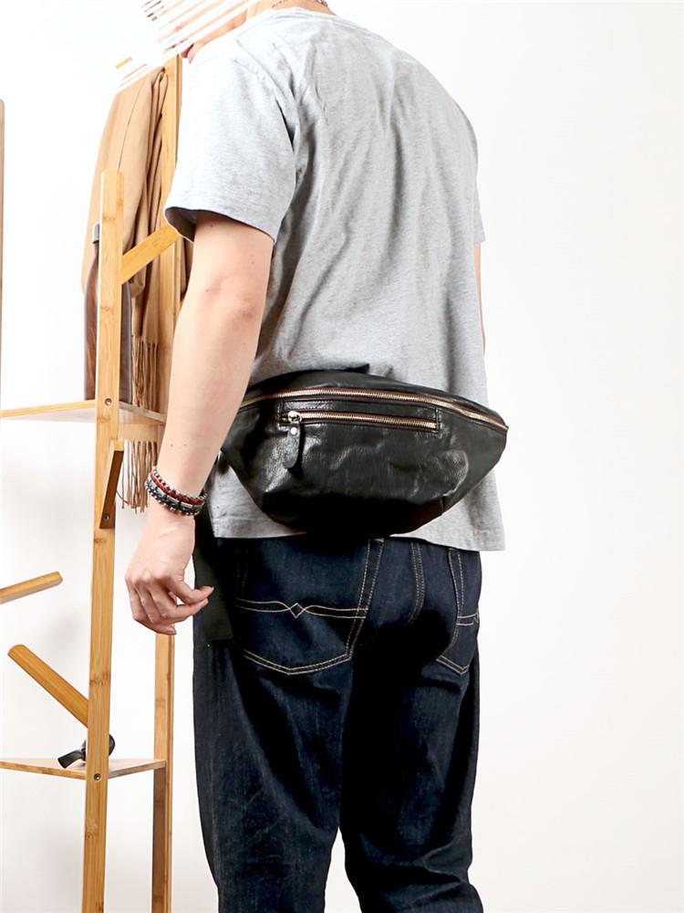 Design: Black Casual Leather Mens Chest Bag Brown Waist Bag Fanny Pack Hip Bag Bum Pack For Men