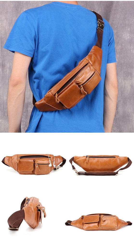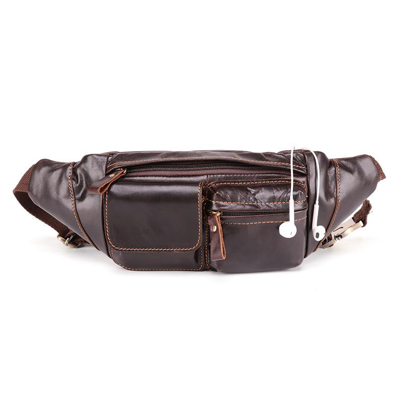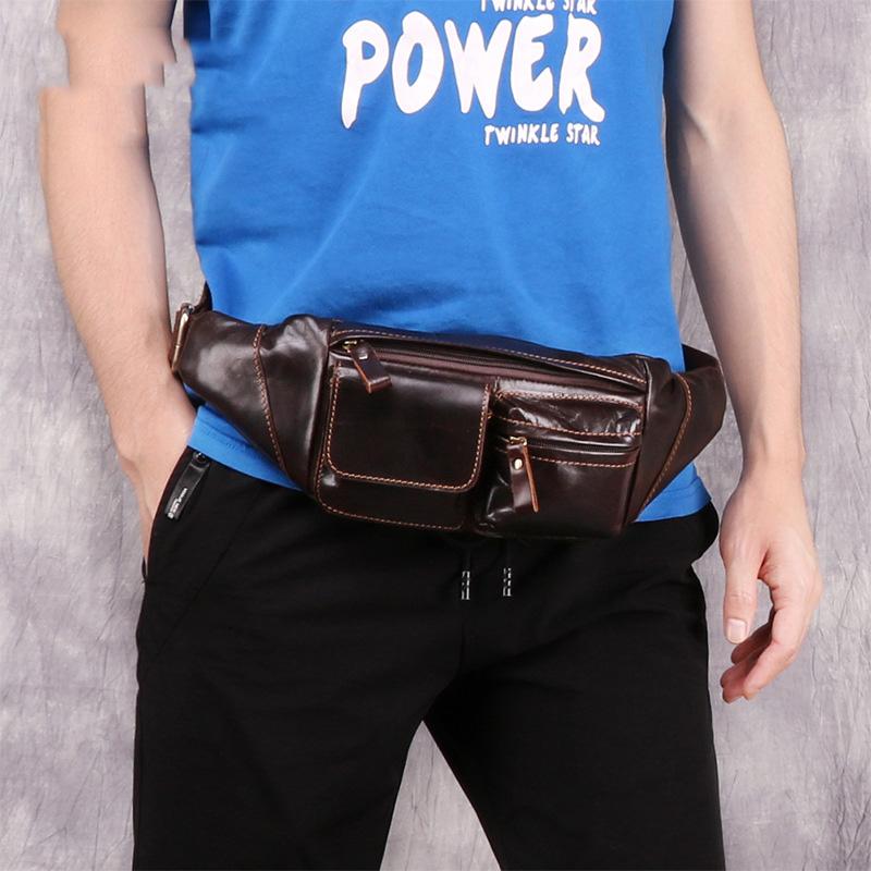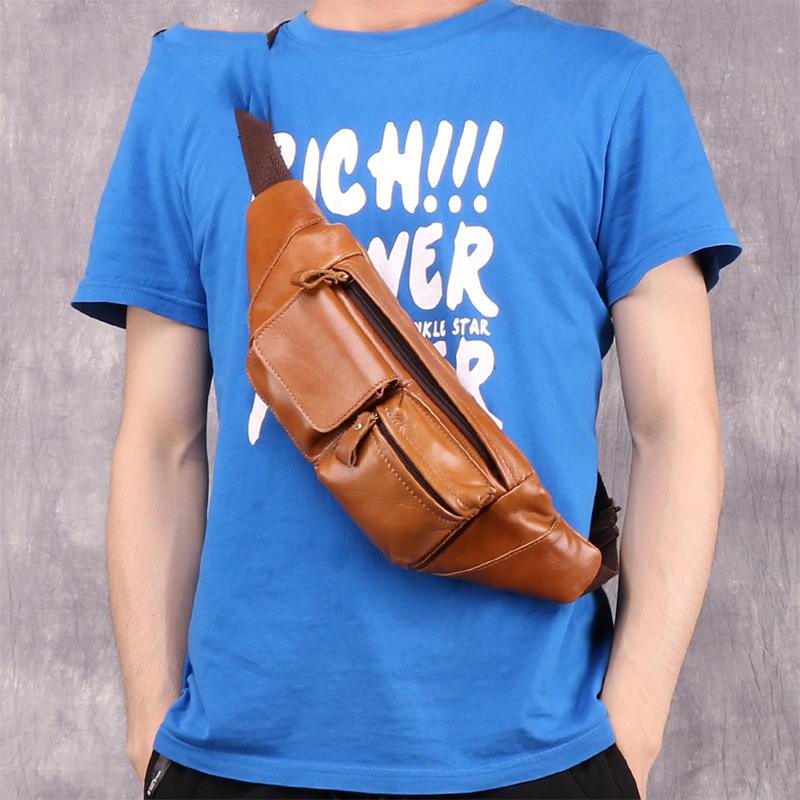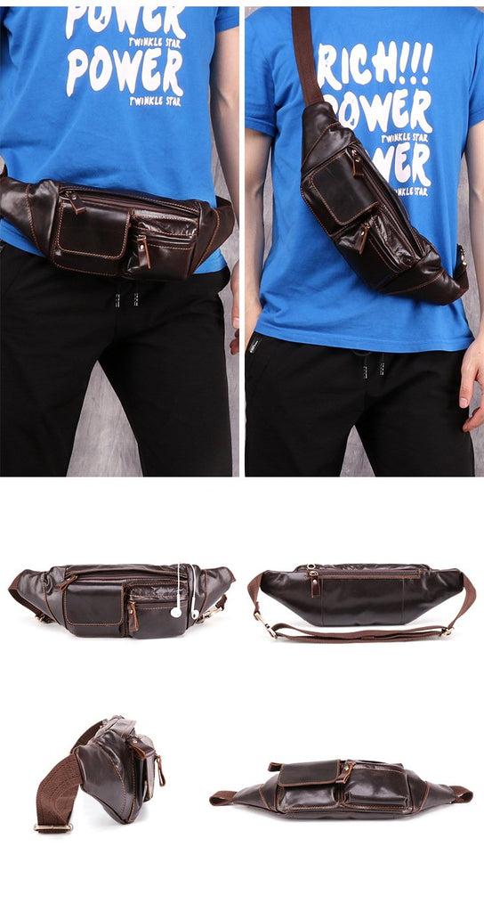 Design: Cool Brown Leather Men's Fanny Pack Hip Pack Waist Bag Chest Bag For MenOverview: