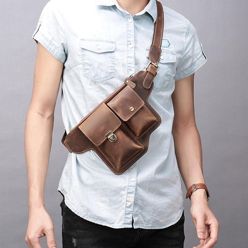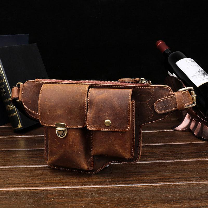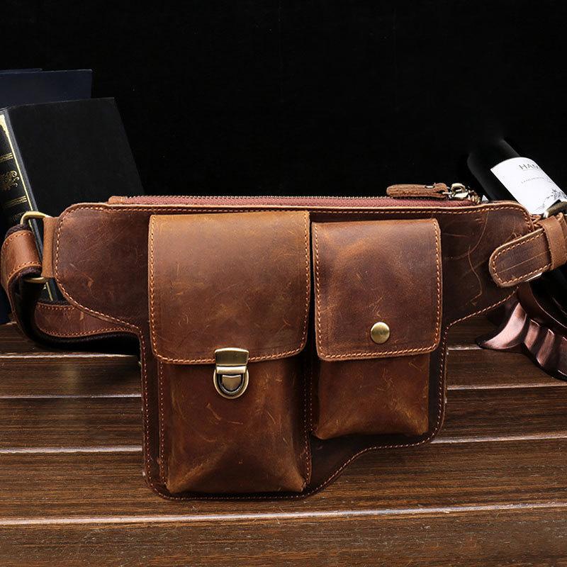 Style: Classy Vintage LEATHER MEN'S Cell Phone Holster Belt Bag Belt Pouch Waist Bag For Men