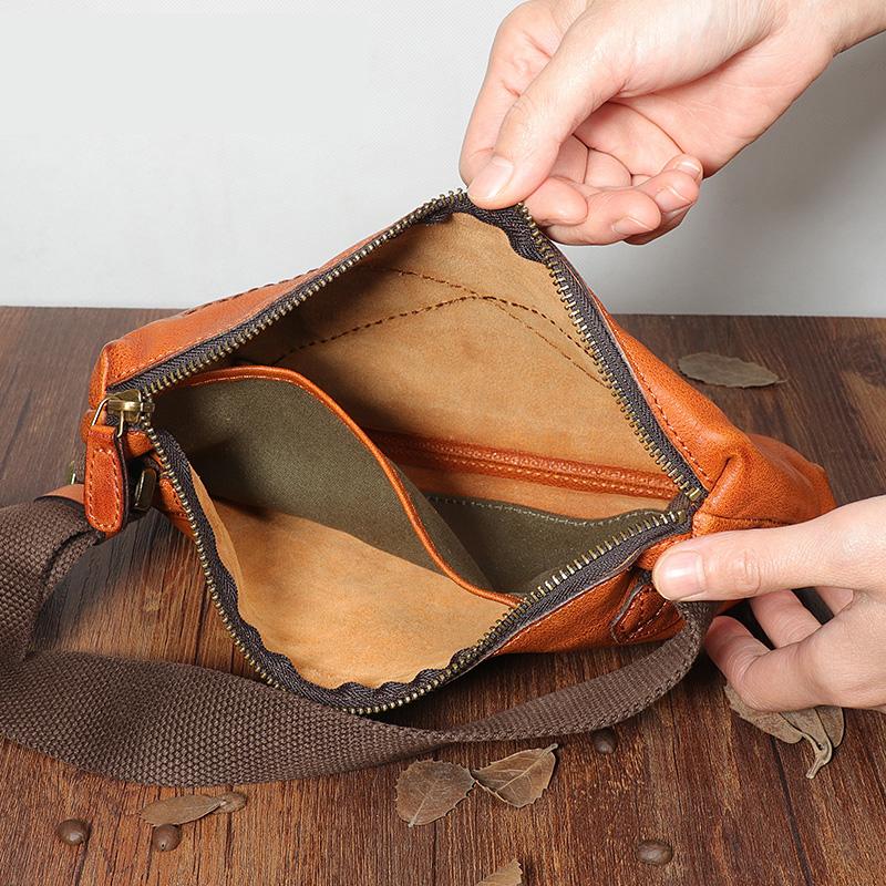 Handmade Leather Mens Brown Fanny Pack Hip Pack Black Chest Bag Sling Bag for Men