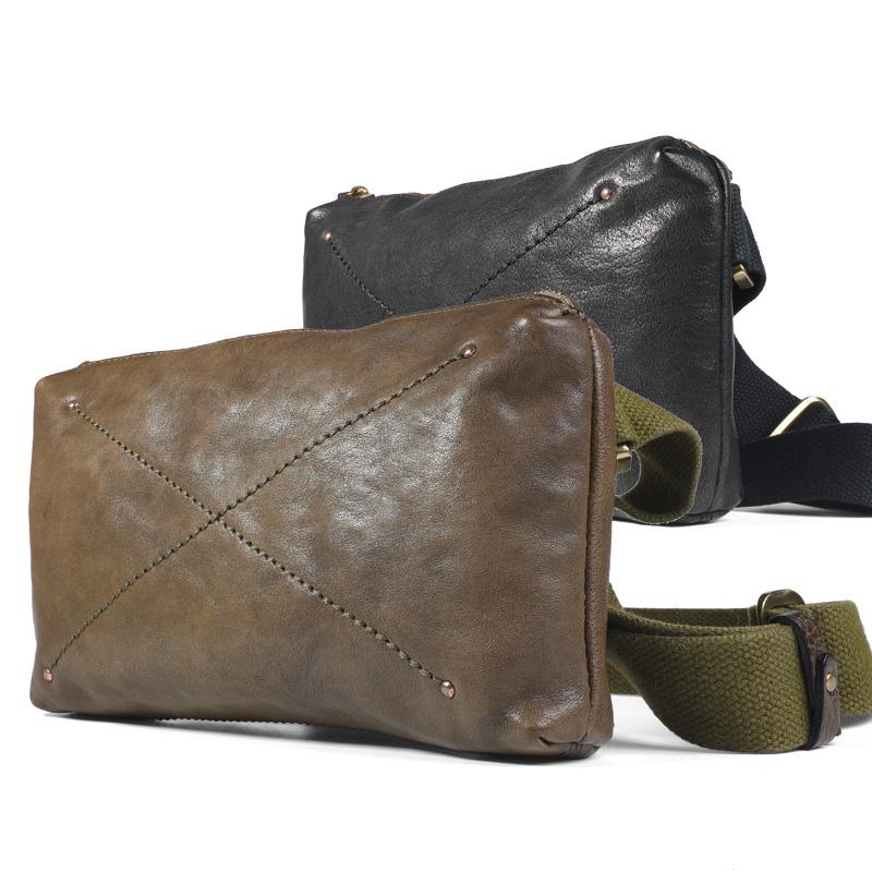 Style: Cool Handmade Leather Mens Brown Side Bag Black Shoulder Bag Khaki Messenger Bag for Men