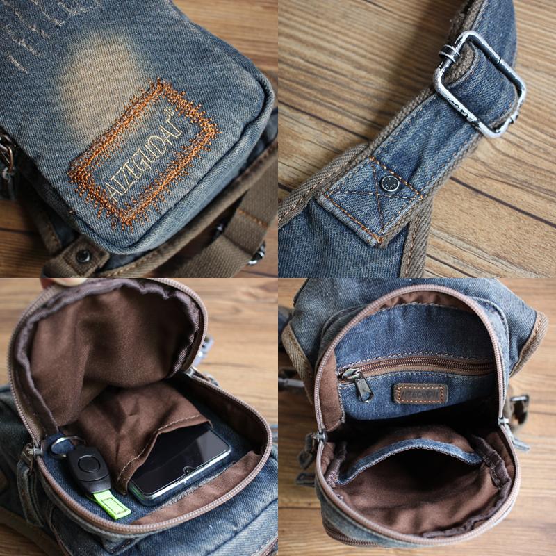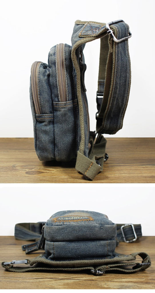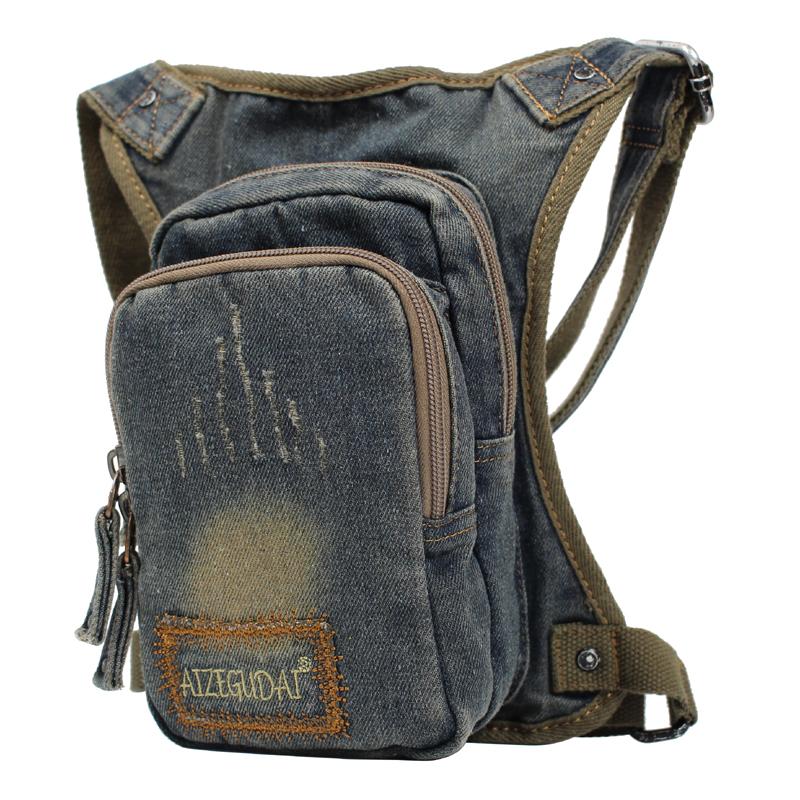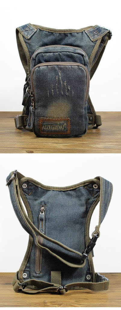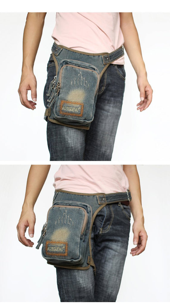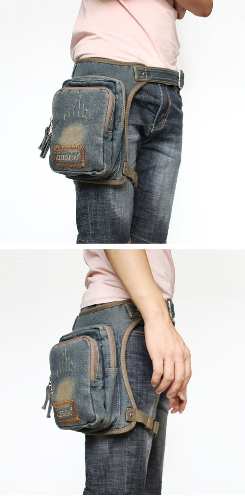 Style: Denim Jean Mens Waist Bag DropLeg Pouch Bag Blue Hip Bag Fanny Pack For Men