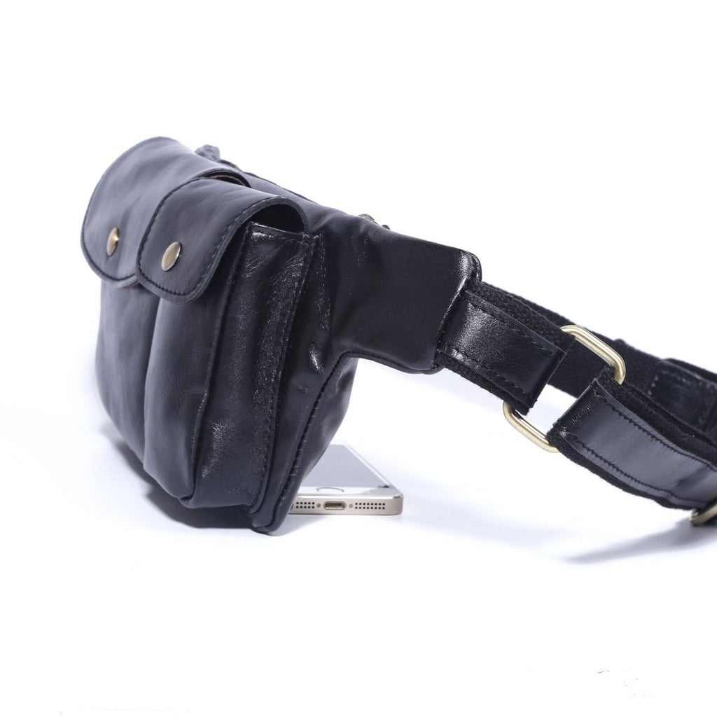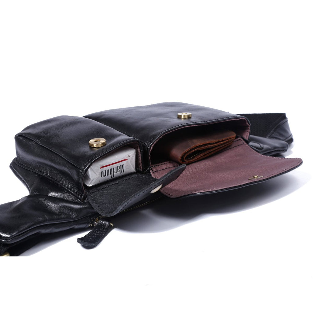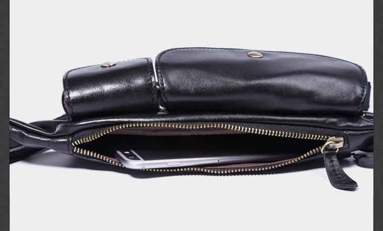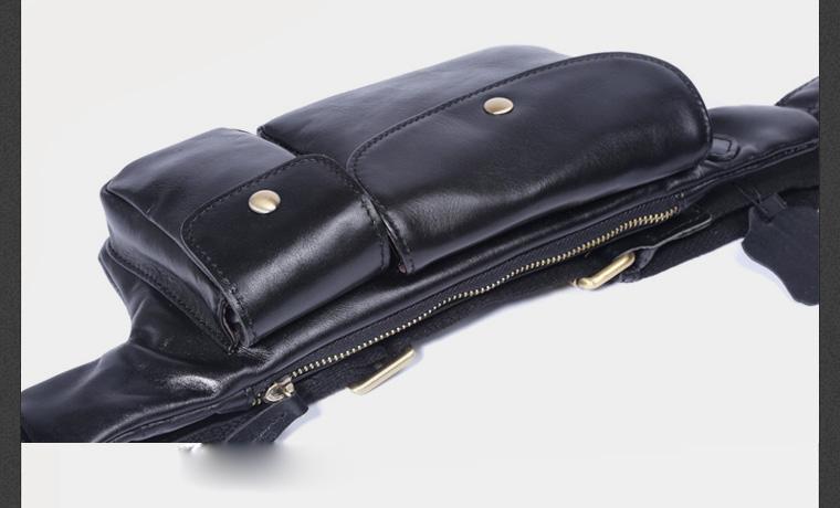 Design: Genuine Leather Mens Small Chest Bag Sling Bag Waist Bag Hip Pack Belt Bag Fanny Pack Bumbag for Men