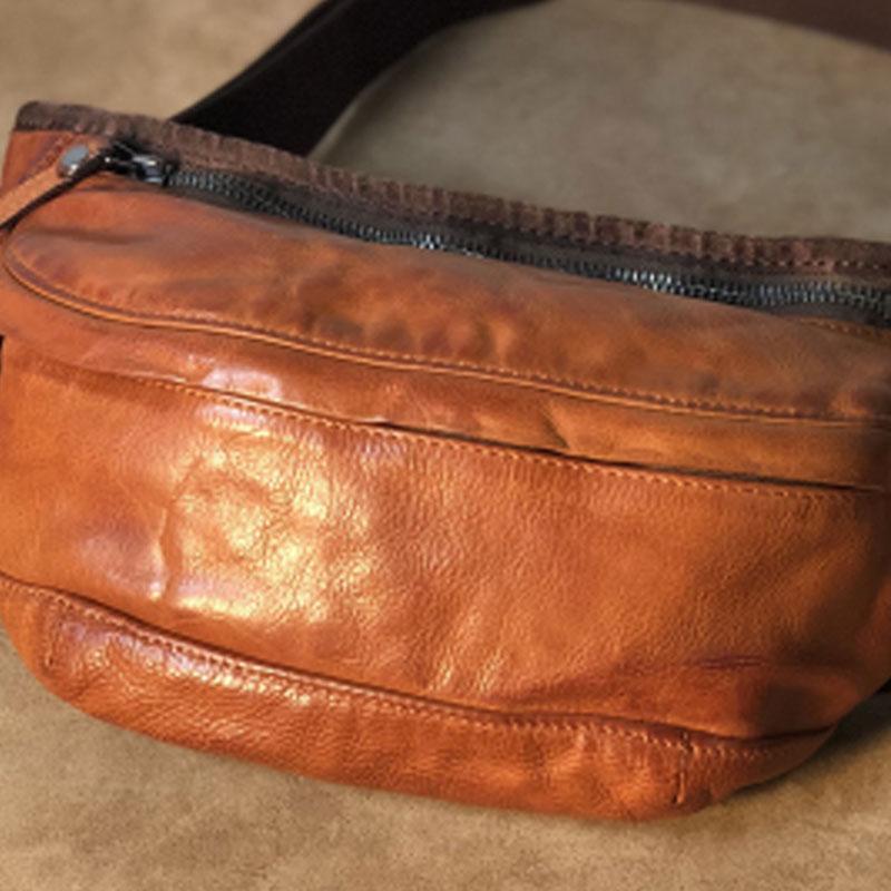 Design: Genuine Leather Mens Small Chest Bag Sling Bag Waist Bag Hip Pack Belt Bag Fanny Pack Bumbag for Men