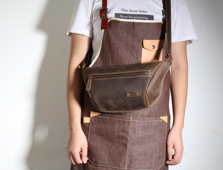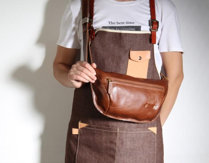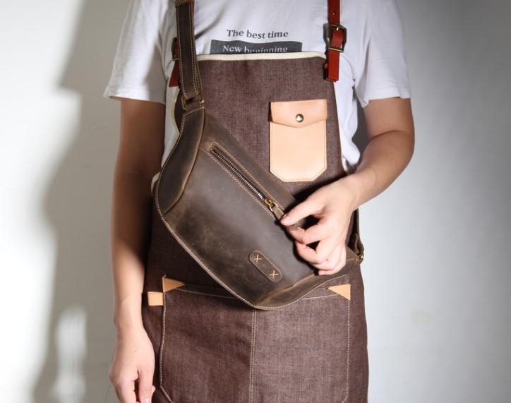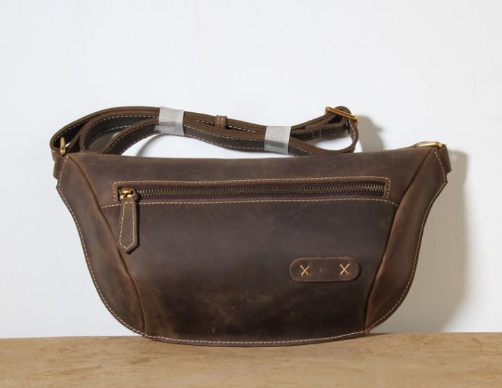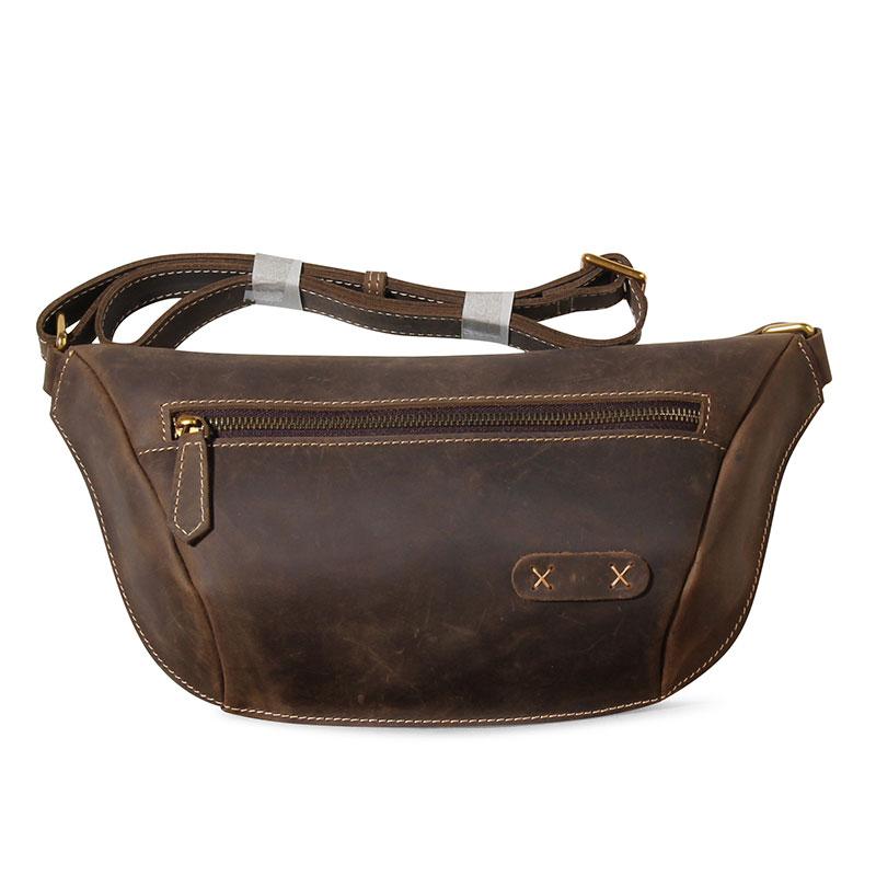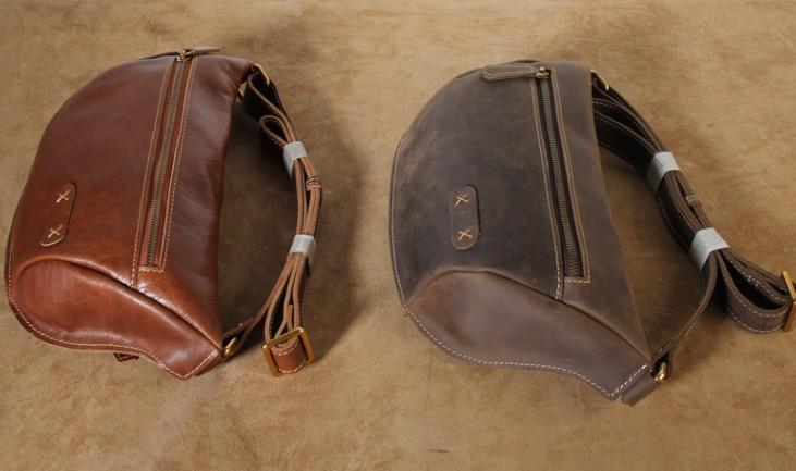 Design: Genuine Leather Mens Small Chest Bag Sling Bag Waist Bag Hip Pack Belt Bag Fanny Pack Bumbag for Men