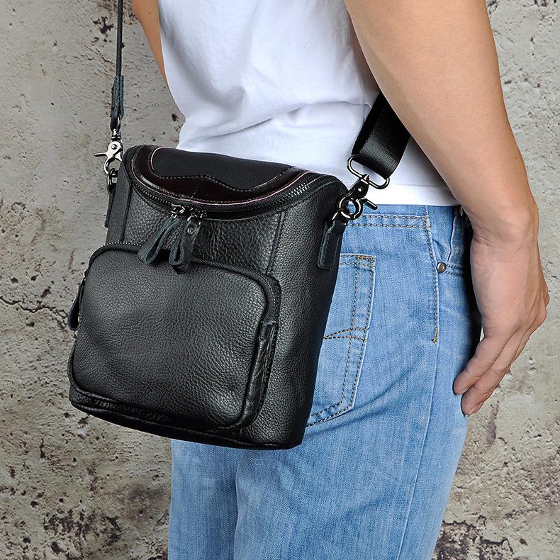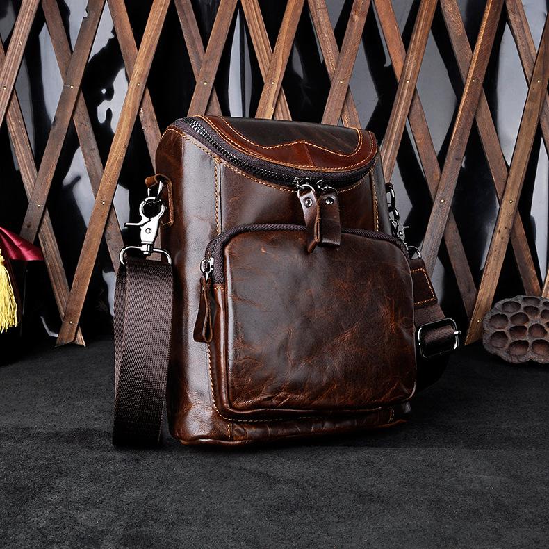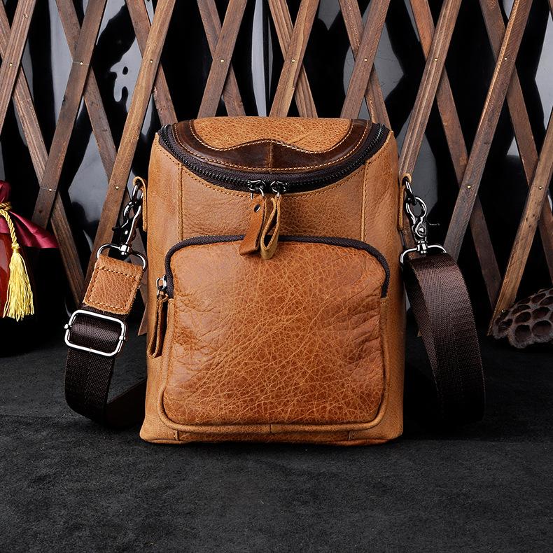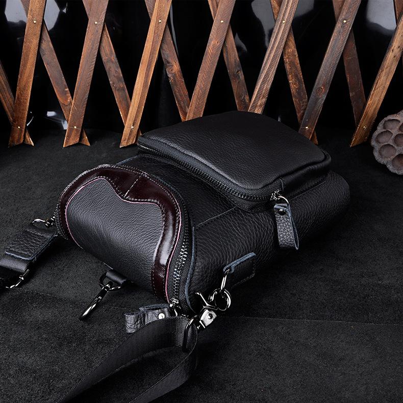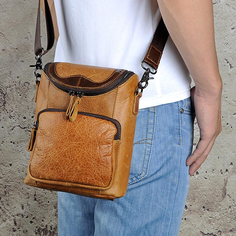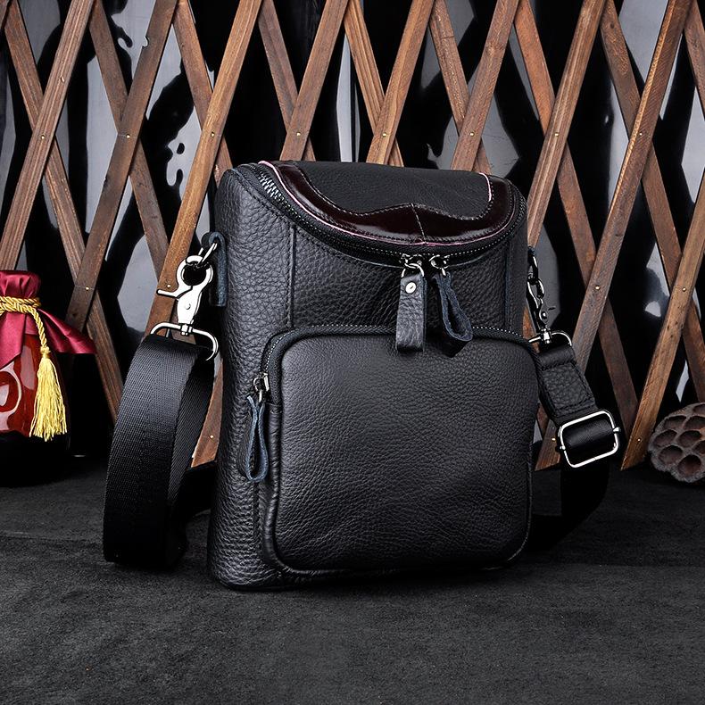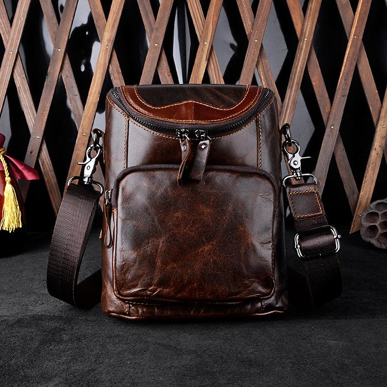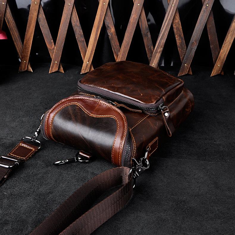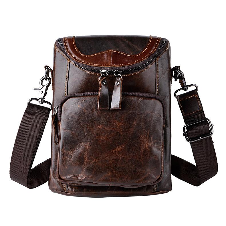 Design: Genuine Leather Mens Waist Bag Hip Pack Belt Bag Fanny Pack Bumbag for Men
