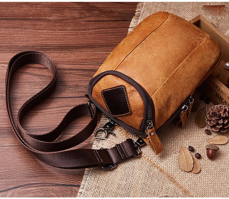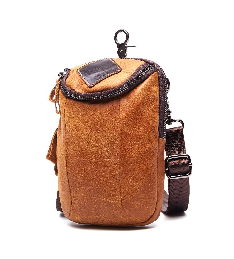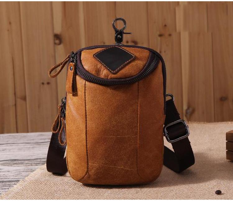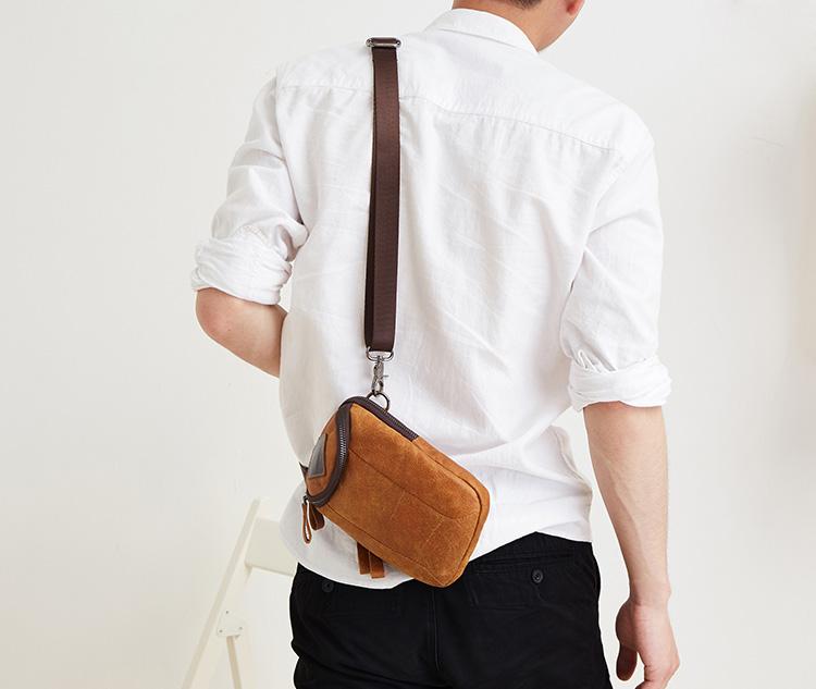 Design: Genuine Leather Mens Waist Bag Hip Pack Belt Bag Fanny Pack Bumbag for Men
