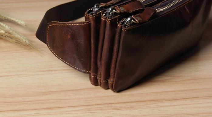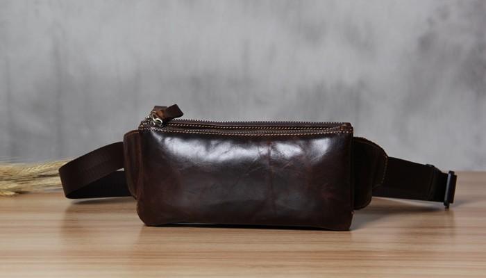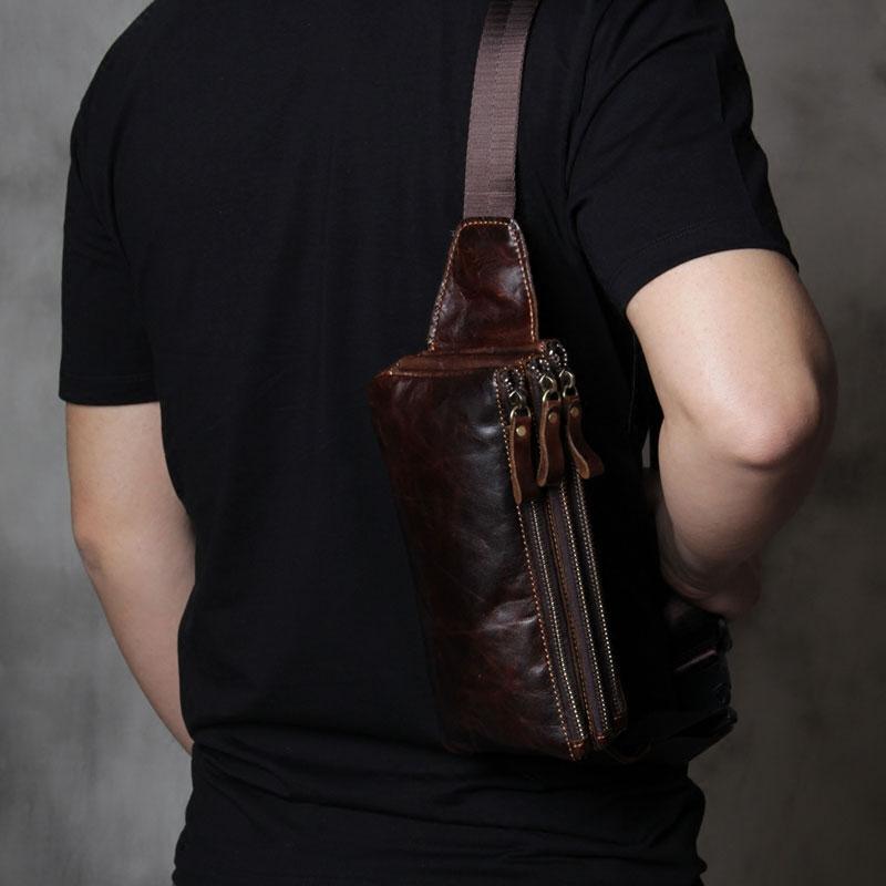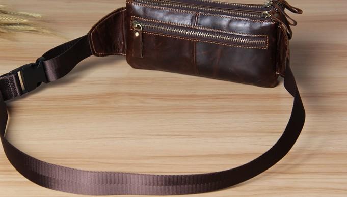 Style: Handmade Genuine Leather Mens Coffee Chest Bag Waist Bag Hip Pack Belt Bag Fanny Pack Bumbag for Men