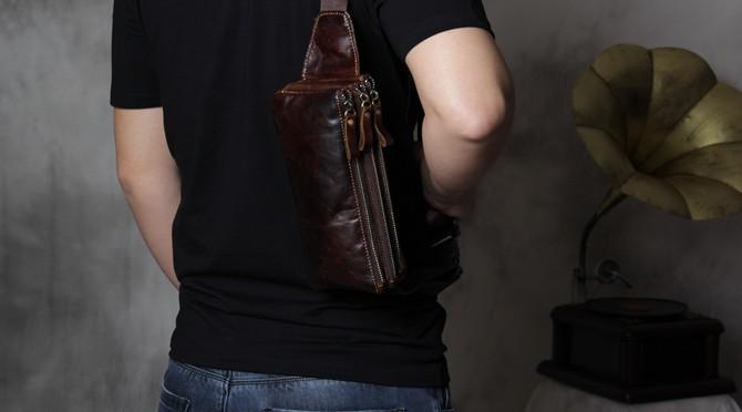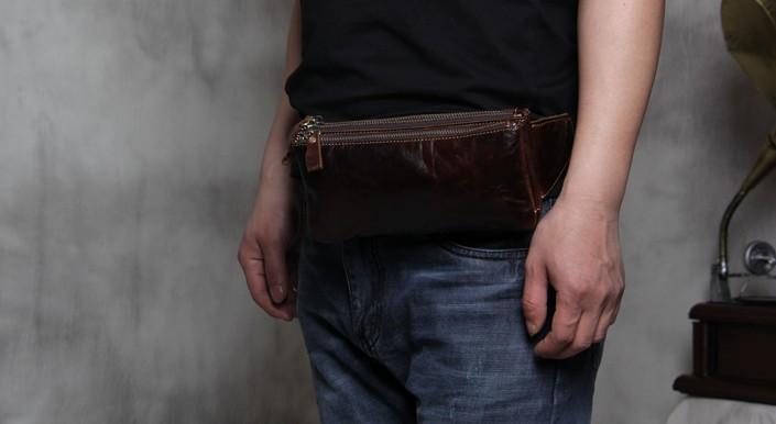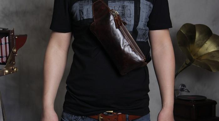 Design: Handmade Genuine Leather Mens Coffee Chest Bag Waist Bag Hip Pack Belt Bag Fanny Pack Bumbag for Men