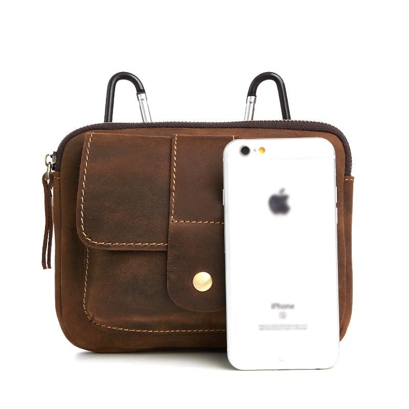 Design: Handmade Leather Mens Small Cigarette Cases Waist Bag Hip Pack Belt Bag Fanny Pack Bumbag for Men