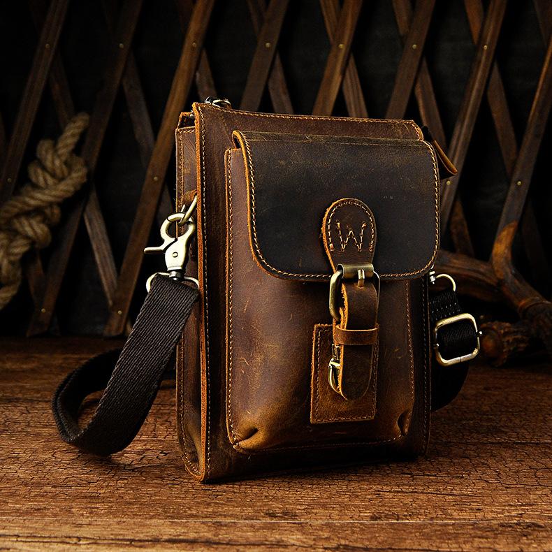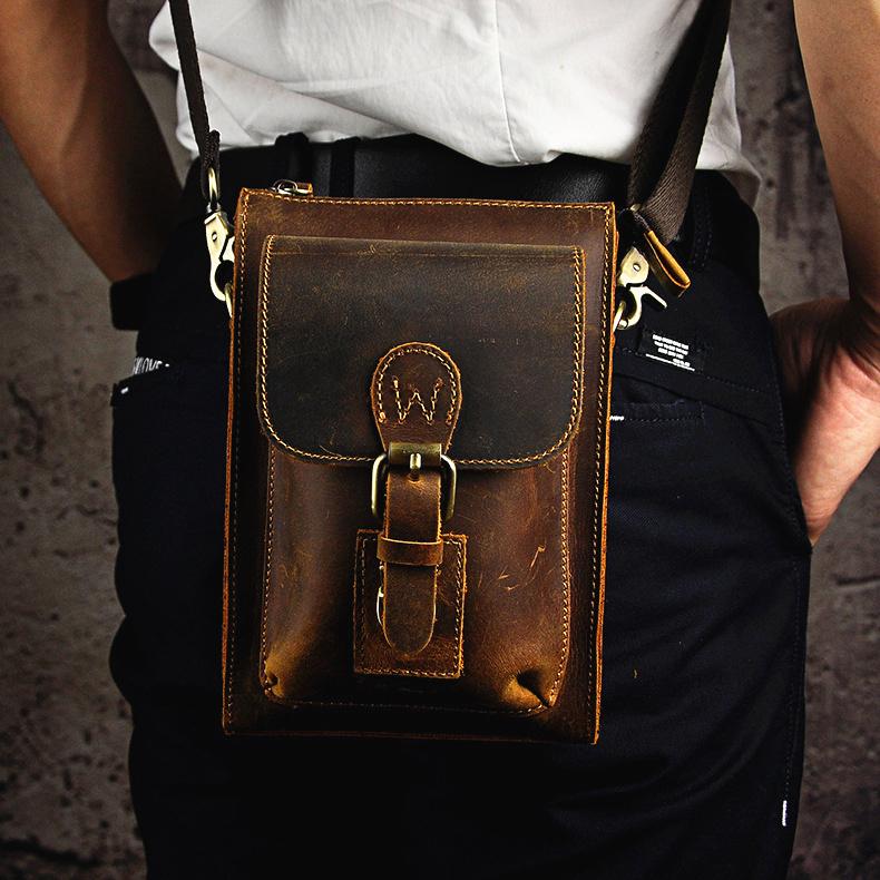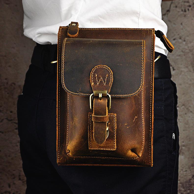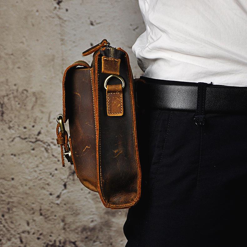 Style: Handmade Leather Mens Waist Bag Hip Pack Belt Bag Fanny Pack Bumbag for Men